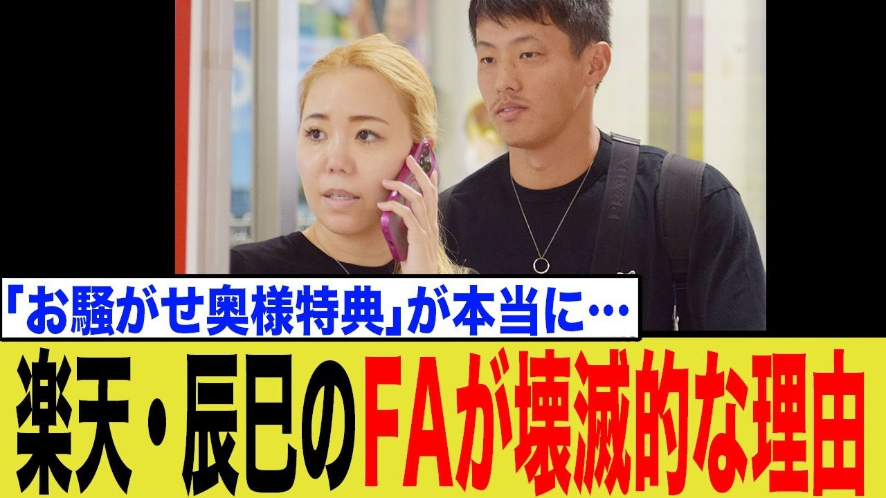 楽天のFAが壊滅的な理由。 今回は楽天イーグルスの守備のよう辰介の FA 事場について少しマニアックな視点で深掘りしていきましょう。本来であればゴールデンブラブ賞連のセンターラインともなれば FA 市場では複数の球団による争奪が起きてもおかしくないはずです。 しかしなぜか彼を取り巻く空気は実力の割 に進まり返っています。その理由として ネット上で誠年しやかにさやかれているの が守備範囲が広すぎる奥様の存在です。 普段何気なく見ているスーパープレイの 裏側で実は獲得を検討する球団を悩ませる 上外乱島のリスクが潜んでいるのです。辰 選手の奥様であるセリーナさんは元銀座の ナンバーワンホステという華やかな経歴を 持ちその発信力とメンタルの強さは9回で も遺を放っています。特に野球ファンの ド肝を抜いたのがゾぞりンスタジアムでの 一見でした。相手チームの応援席である ライトスタンドに乗り込み応援する気は ないけれど歌いたいと動画を撮影。さらに 相手選手や子宮に対して過激なコメントを 残すなどまさに日に油を注ぐような行動に 出たのです。普通であれば選手である夫が ひしに回るところですが、辰選手はあろう ことかもっと堂々とやって欲しかったと SNSで反応し夫婦揃って炎上の過中に 飛び込む形となりました。こうした一連の 振る舞は起立をじじる球団組織にとって 見過ごせない懸念材料となっている可能性 があります。実力は折り紙つきですが獲得 すれば燃えなく予想のつかないエタメまで ついてくることになるからです。球団 オーナーやご両親との関係性までオープン にネタにしてしまうそのスタイルは編成 担当者からすれば人的保証以上に計算でき ない重たいコストに見えるのかもしれませ ん。 守備の名主がプライベートでは守備放棄でフルスイングしてしまうというこの矛盾。果たしてこの子性夫婦を受け入れる土僚のある球団は現れるのでしょうか? たまたまに薄。 これに対するネットの反応。 守備はガチで一級品なんだけど獲得したら漏れなく嫁がついてくるのが最大のネックだな。 人的保証よりもあの奥さんの取り扱メ書を作る方が難易度高いでしょう。 ライトスタンドの剣はさすがにライン超えてたし、あれを旦那が煽るのはプロとしてどうなのかと思ったわ。 楽天だからこそされてた部分はあると思うし、打球団のフロントは 2の足を踏むのも納得だわ。 成績だけに見れば欲しい球団はあるはずだけどリスク管理の面でマイナス査程がでかすぎる。 親とも絶縁してオーナーにも噛みつくって獲得したら球団内部がめちゃくちゃになりそうで怖い。 夫婦揃ってメンタルが強すぎるというか炎上メとして楽しんでる感じが逆にす々しいレベル。 結局残流で楽天に骨を埋めるのが 1番平和な結末になりそうだな。 プレイは好きな選手なんだけどプライベートの話題が強烈すぎて純粋に応援しづらいのが残念だ。 これどまさにもつまって感じだけど FA 市場では完全に足かせになってるのが秘肉だな。 ネット上の反応を見ると竜選手の実力を高く評価する一方でやはり奥様の言動や夫婦での振る舞いをリスクと捉える声が圧倒的に多いようです。 特に多球団へ移籍した際のトラブルを懸念 し、楽天に残留するのが最善の道ではない かという冷静な意見も目立ちました。 いかがだったでしょうか?皆さんの熱い 野球断議も是非コメントで聞かせて ください。見逃し三振はもったいないので 高評価とチャンネル登録もよろしくお願い します。