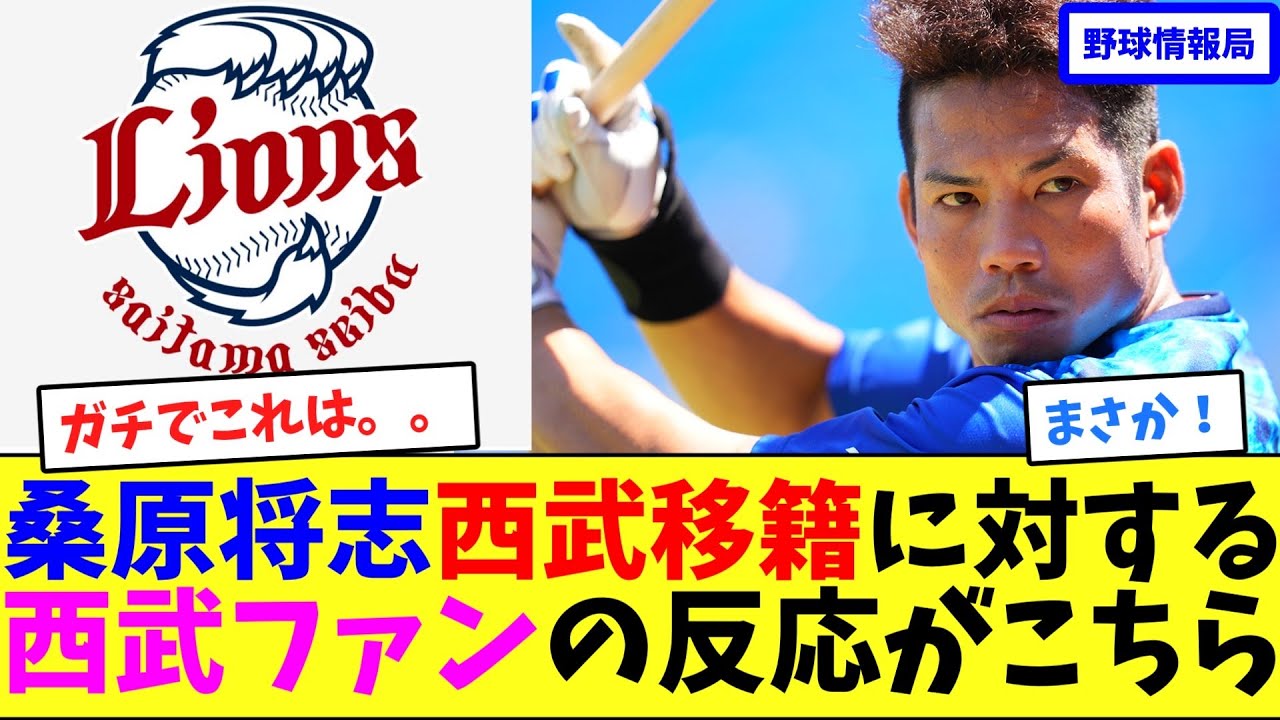 桑原正幸遺跡に対する西武ファンの反応が こちら。DNAから海外FA権を行使した 桑原正幸外が西武と契約合意に達したと 25日複数のメディアが報じた西武として のFA宣言選手の獲得は宣言残留を除いて 2015年以来10年ぶりとなった 中ネット上では西武の獲得に驚く声が並ん だ。ようこそライオン 西武ファンがFA という単語で喜ぶ日が来るとは思わなかった。 キツネダンスの人来た。 桑原選手のプレイは交流戦や日本シリーズで拝見してすごく良い選手だなと思いながらライオンズとは縁があるとは全く思いませんでした。しかしまさかライオンズに来てくれるとは来はよろしくお願いします。 音沙汰がなかったFA で選手が来ることが実質初めてな西セブファンがこぞって困惑してます。 西武FAで取るの10年ぶり4 人目らしくてセーブファンがプロテクト予想で大慌てなのおもろいな。笑 ガチでこれは嬉しい。来てくれてありがとう。 ひ体になってからチームがガラっと変わってきたな。 ガッツある選手が西武には必要だと思っていましたが、まさか桑原選手が来るとは。 まさかの来てくれて嬉しいんだけど、それよりも本当に良いのかと困惑してしまう。 ひ池さんのチームを強くすることの本気度というか、意とコーナーが抜けるからこそ補強しないという意気込みを感じるね。 人的は騎士か水上か松本青山豆だ。 まさかの事態にバタバタするライオンズファン。 西武はコンオフマジでめちゃくちゃ有能だぞ。どうした?本気で優勝狙う動きやん。環境もリッチも年対遇も悪い。こんなチームに来て良いんか? 西武が交渉しているとは全く思っていなかったのでびっくりしました。まさかまさかこういう強化する姿勢を見せてくれているのが嬉しい。来が今から楽しみです。セブに FAで入ってくることあるんか? ご視聴ありがとうございました。チャンネル登録お願いします。 Ja.