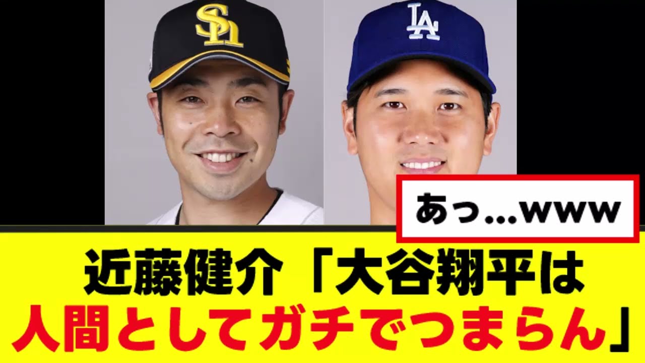 地方近藤賢介先輩谷翔平に勝ちではっきり言ってしまう。 22 日ソフトバンクの近藤賢介が福岡県地越市のファーム施設で開催された野球教室ベースボールキッズ 2025 に出席。そこで近藤選手が日本ハム時代の後輩であるドジャース大谷翔平選手に対してガチではっきり言ってしまったとして話題となっている。近藤は日本シリーズ明けでは初めて大けの場に姿を見せ 子供たちに打った。 その後子供たちから大谷選手はどんな人 ですかと質問を受けた近藤は一言で言っ たら今の姿を思い描いて小さい頃から練習 をしてきたり野球中心で僕からしたら 楽しいのかなと思うぐらい野球中心で全て を野球にかけているだから今の姿はなって 当然かな人的にはつまんないですけどと 語っていた大谷についてガチで直感を述べ た近藤に対しネット上では様々な声が 上がっている 近藤しか言えない定期すでに歴史場 の人物だけどパスタ塩で食ってんの見るとそんな人生もどうなんとは思う。 こんちゃん行った後に詰まってるのがガチで思ってる感あって好き。 前回のWBC が団結できたのってこんちゃんが大谷にキモいわって言ってたのでかいよね。 塩パスタと鶏肉しか食わないことでお馴染みの偉い人。 でも大谷ってまみこさんと結婚してからちょっと人間っぽくなったよな。 大谷野球うまい返人だからな。なん球チャンネルは現在動画編集者を募集しています。 興味のある方は動画概要にあるメール アドレスにご連絡ください。