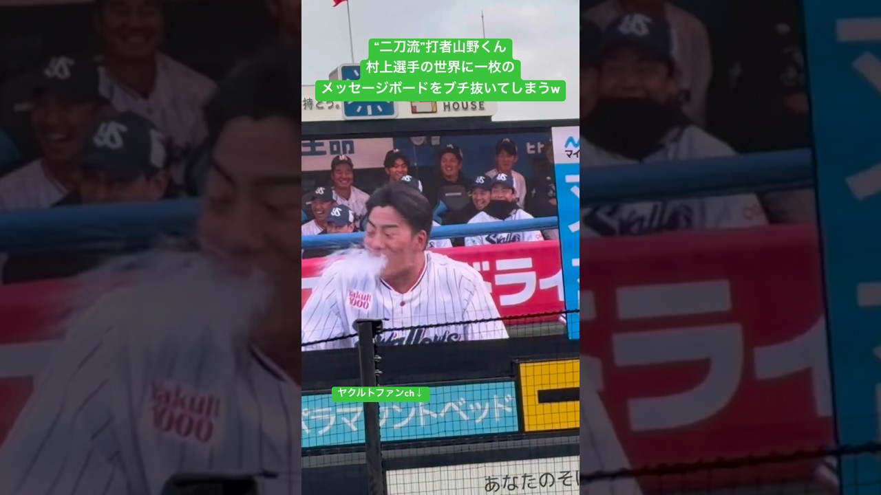 “二刀流”打者山野くん村上選手の世界に一枚のメッセージボードをブチ抜いてしまうww #ヤクルト #スワローズ #野球 #神宮球場 #プロ野球 #村上宗隆 #npb #山野太一 Thank you. Tokyo Yakult Swallows山野太一東京ヤクルトスワローズ NPBHUB.COM | The Fanbase of Nippon Baseball & Nippon Professional Baseball