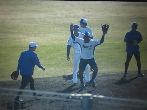 【中日ドラゴンズ 秋季キャンプ 2025】 有馬惠叶投手・細川成也選手・ブライト健太選手・福元悠真選手・森博人投手?がセカンドの位置でノックを受ける 2025/11/15 ナゴヤ球場