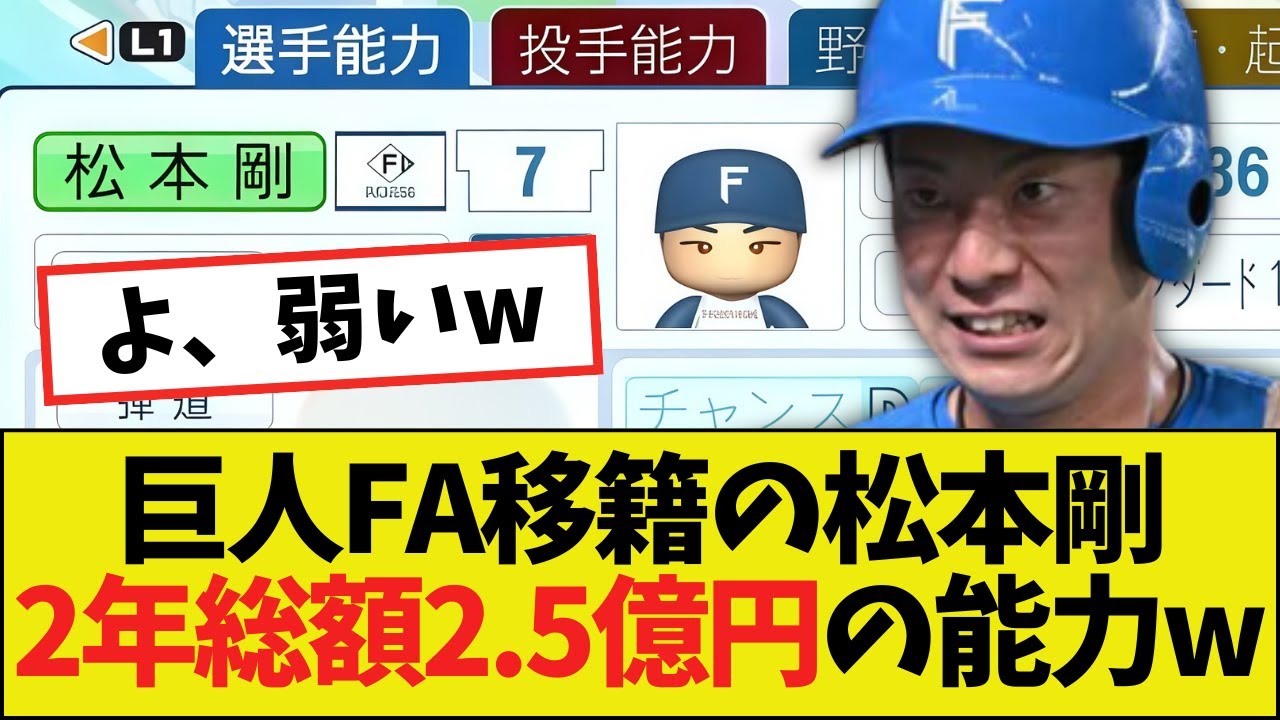 気巨人に2.5億円でF移籍する松本 532歳パワトロ2025の能力がこちら 。 2.5億円の守備型め。ごめん。弾道2で パワーEは東京ドームだと入らんわ。 バント丸でもバントは去年15の15だも 白目。安倍政権でのバント丸はレギュラー 格約と闘技。巨人父あ来年もまたバントで 荒れるのか。松本号の巨人での契約。2年 総額年2億5000万円。背番号は9。 とりあえず背番号は009でお願いします 。松合ってそんなに打撃悪いの?松本の 実際の2025年1号成績試合66打率 0.188 ホムラン0OPS0.5075 -1.0これに人的保証発生するの詐欺で 草。個人的保障で安倍し之助が日けてXが 荒れてる。王がマイナスの戦士引き取って 人的保証まで渡すって事前事業。初号で 変換したら松合って出た。嫌な予感しかし ない。だったらクワ原欲しかったよ。 ぶっちゃけ桑ワ原辰松本じゃね。辰の後ろ にダイナ10個を追加して欲しいです。 ずっとハム見てたけど松本が何でもできた のは2022だけ。ここで月ツやめてくれ よってところね。ごとく内屋の真正面に 打ってた。でも顔は超巨人顔なんだよな。 めちゃくちゃ似合ってて草。似合いすぎて てワンちゃん活躍するかも。これは 生え抜きの顔ですわ。松本巨遺跡によって 日ハム2011年ドラフトが曰付きの ドラフトにドラフト1位菅の友之行は パワーワードすぎる。ドラフト7位壮大 ソフトボール部大島匠これ何だったん?1 位巨人その後メジャー2位巨人最って4位 ソフ5位戦力外6位なんちゃってメジャー その5ソフ7位戦力外地獄2011年ハム ドラフトのすごいところ15年近く経って 半分異常電日ハムにはいないスカウトは すごいのにフロントが終わってるの草直近 1ヶ月で起こったこと安倍族グリフィン 大団岡本兵松本獲得山瀬ならん。お声なら ん。ジェットコースターすぎるだろ。 ジェットコースターってどこか上がる要素 ありましたか?あとは松本の人的保証で もう1回ジェットコースター。ジェット コースターっていうよりもうフリー フォールよ。 ご視聴ありがとうございました。是非 チャンネル登録お願いします。いつも見て くれて嬉しいです。ありがとうございます 。