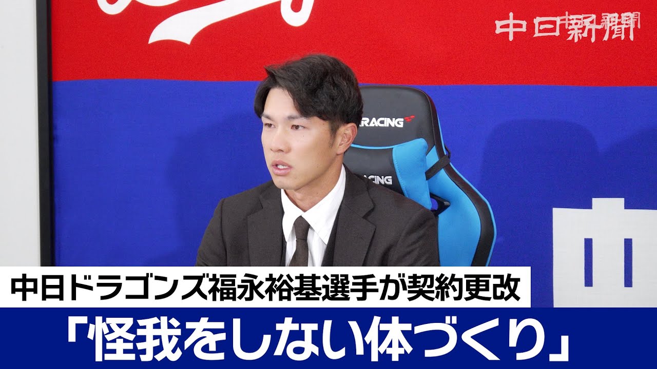 中日の福永裕基内野手が11月24日、ナゴヤ球場に隣接する選手寮「昇竜館」で契約更改交渉に臨んだ。今季年俸の3500万円から800万円減の2700万円でサインした。(金額は推定)