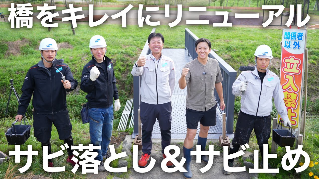[音楽] というわけで、え、今日はですね、株式会社ミ三屋の三社長に来ていただきました。あの、実はお寿司屋さんで、 そうですね、 出会ってですね、 ちょっと色々こう息統合していただいて、ちょっと美かさんの会社に色々手伝ってもらおうということになりました。どういうメインの事業をされてる会社なんですか? [音楽] はい。内装工事を、 あ、メインとしてお仕事をしてます。 ホテル、それから学校病院、エスコンスタジアムなんかもですね、あの、携触らせていただいて、 はい。もう本当にこう内装全般やられてる中でちょっと僕らの野球場は [音楽] 色々やってほしいなと思って、まずはこの橋 はい。 黄色とか緑とかオレンジとかあったんですけど、ちょっと色統一したいな。色どうやって塗ったらいいんだろうみたいな。 はい。 それ相談したらあ、うちできますよみたいな て感じになって今回手伝っていただくていう はい で今日チームの方が来てます。 [音楽] ちょっとお名前伺ってもよろしいですか? 中谷と言います。 中谷さん。 はい。 よろしくお願いいたします。 須戸と言います。お願いします。 東海大4 そうです。 こで野球部野球部 そうです。ました。 野球部です。はい。 ええ、すごい。 中に行っています。 え、 あ、弟です。 おえ。 京都いいっすね。ええ。 あ、じゃ、そんな方も仲間にいらっしゃるんですね。 なので今日は一旦まずこの橋をはい。 [音楽] サ落としてペンキ塗ってみたいなことすよね。 [音楽] はい。はい。 そう色をね、ちょっとね、全部変いたいんです。で、ちょっとあの、バックネットのセンスとか、ま、あの、マに合わせたいので、 [音楽] ま、あんな色にしたいなっていう思いでよろしくお願いします。 よろしくお願いします。 お願いします。 こう皮スきというですけど、 これはい。皮 皮付きすき。 はい。 で、こう剥がれてるところを はい。削っていく。 小膜を取る感じで。 さん はい。 絶対しんどいでしょ。このオレンジを取るために自分にやっていくわけですね。 はい。浮いてるところを取るイメージで。 はい。こ、こんな感じで大丈夫ですか? はい。 このも剥がす。 いや、そ、オレンジのこの浮いてるところをこす。 うわ、オレンジだけでいいんですね。 なんかあれですね、あのお好み焼きのあのあれをやるみたいな感じ。 そうですね。ヘラ ヘラヘラやっぱあれですか?お好み焼き改造が得意す。ま、他の人よりは上手。 あ、本当ですか?ね、絶対そうすよね。 こんな感じ。 そうですね。 もうこれは地道な作業なんですよ。え え、あの、まね、大きな面とかになるとね、また色々とね、え、機械使ったりとかもできますけど。はい。 手前ところになりますと。 そうですね。 やはりマンパワーで作業ですね。 はい。 ちゃんとやれってことです。 ス藤さんと中谷と君。ちょっとちょっとちょ、ちょっと一緒にやろう。ちょっと一緒にやろうよ。果てしない。 いや、これ果てしないよ。 まだこれですもん。 全部落とすよ。やっぱりこ浮いてるとこをこう 浮いてなきゃいいだもんね。そうだよね。 どんなに綺麗に売ってもすぐ剥がれてしまうんで 出っ張ってるとこう引っ掛けて剥がすイメージ。 出っ張ってないところはもうパスしてパスしてる。 なるほどなるほど。 こういうの残ってるのも 残ってるのは今度このあのサンドペーパーであの滑らかにこうれとは多分と思うんですけど [音楽] それをやるとこう触り心地がこ 特にこの上の方とか人触るところは あの これを結構強めにかけてこう手触り怪我がしたりとかこ [音楽] ちょっとでもこう引っがあると そうです これて死ね。果て死んだ。 [音楽] なんかもう心折れ折れてましたよね。 心はやっぱこうね、ゴールが見えないとちょっとあれだけどちょっと中崎さんちょっとゴールを僕に色々見せてもらっていいですか?はい。 天気よくやるのが やだなと思ってたらどうしてもこう続かないので なるほどね。 あの、イ、綺麗になることイメージしながらも、あの、 なんかいいすね。 野球選手と一緒っすね。 ね、津藤さん ね、 やっぱり勝つことをイメージしながらやるってことすね。 津さんはポジションどうだったんですか? セカンドですね。 セカンド。 ええ、何番すか?打順は 2 番です。2 番セカンドなんかもう万出てきそうなキャラじゃないですか。 [音楽] SNS見たんすけど、若い方多いすよね。 そうですね。多いす。多いす。 まだ21歳なん。 まだ21歳。21 歳です。21? うわ。 下の名前な何て言うの? ハオです。 覇オ。 はい。 覇は給料くら回てんの?い、具体的。具体的。具体的。 やばい。やばい。やばい。やばい。やばい。 すごいこれてきましたね。なんか ってます。 ペース、ペース上がってきてますね。着、と上位で行きますよ。 ドラフト行きます。 1位。 そうやって言って本当は返し目とか いやいやいやいやないないないない とか言ってる間になんかだんだん削れてきたんじゃないですか。 ど
