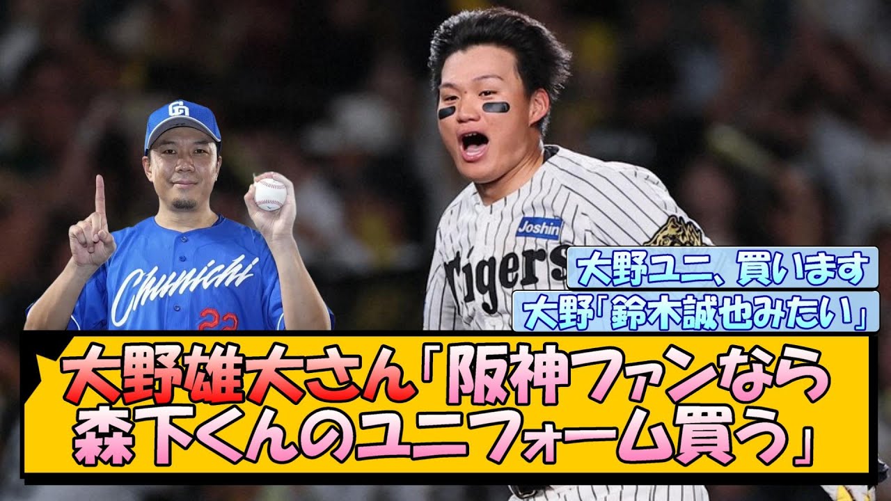 大野雄大さん「阪神ファンなら森下くんのユニフォーム買う」