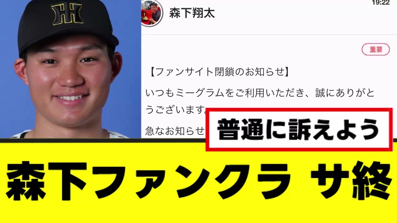 森下翔太のファンクラブ。ガチで詐欺すぎるサービス終了。 26 日、阪神タイガースの森下翔太選手の個人ファンクラブがチで詐欺すぎる言葉を残してサービス終了したとして話題となっている。閉鎖のお知らせいつもミーグラムをご利用いただき誠にありがとうございます。急なお知らせとなり誠に恐縮ではございますが森下太選手ファンクラブは誠に勝ってながら 11 月末日を持ちましさせていただく運びとなりました。 閉鎖についての詳細はメッセージにて送信 しておりますのでお手数ではございますが ご確認のほどよろしくお願いいたします。 いつも応援してくださる皆様にもっと僕の 活動を身近に感じていただけたらという 思いからスタートしました。ここでしか 見ることのできない限定の写真や動画、 そして会員限定の特別な得典をご用意して います。野球だけでは伝えきれない僕の 菅顔日常もお届けしていけたらと思ってい ます。ファンの皆様との繋がりを大切にし ながらこれからのシーズンも全力で頑張り ますので温かい応援をよろしくお願い いたします。ご入会心よりお待ちしており ます。米メ印ファンクラブで応援いいた 収益は今後の撮影や衣装政策イベント運営 等に大切に活用させていただきますと 投稿した。これに対してネット上では怒り の声が多く上がっている。はい。詐欺 訴えよう。 年間プランなかったっけ?その人たちの分の返金はあるんやろか? ガチでこれなんだった?対象。 まあ、潔ぎ良いはそんなことしなくても野球で稼げば人気ももっと出るよ。 カー姉つめ豪快なプラン。今シーのファンクーラブ稼げ。森下。 森下はコンサルのやつに騙されてただけやろうけどコンサルがやばいわ。 みんなで訴える署名しようぜ。 なんぜ?今球チャンネルは現在動画編集者を募集しています。 興味のある方は動画概要にあるメール アドレスにご連絡ください。