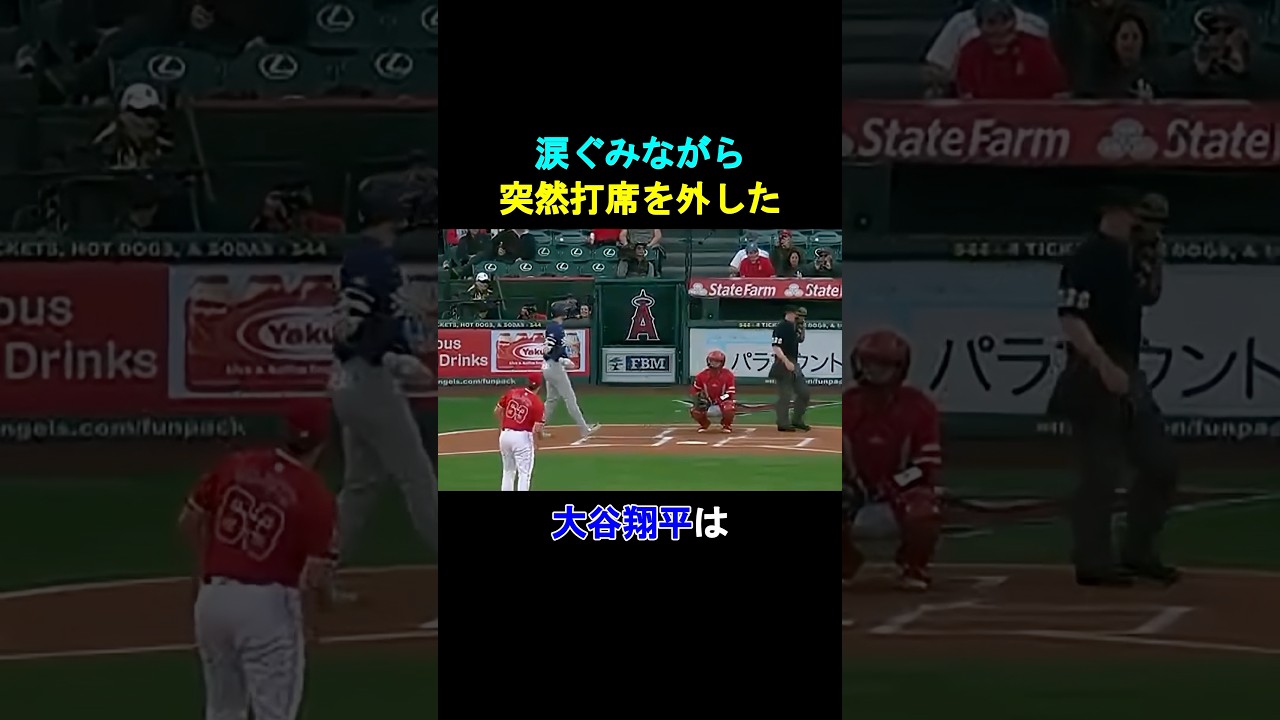 涙組ながら突然な席を外した大谷翔平は 24年3月26日遺跡発となるエンゼルス スタジアムでの公式戦に2番DHで出場し た初回1番ベッツがファウルフライで 倒れると大谷は早速初打席を迎えバッター ボックスに入ろうとしたがセンター方向を 見つめながら突然打席を外した。実は大谷 が打席に入ろうとした瞬間、音楽と共に ワックスクリーンにはエンゼルス時代の 大谷の活躍やチームメイトと楽しんでいる 様子が映されていたのだ。6年プレイした フルスの息な墓計に大谷が思わず打席を 外すと審パもタイマーを止め1分ほどの間 大谷は考え深い様子でバックスクリーンを 見つめていた。映像が終わると太谷は ヘルメットを取って場内を見渡しながら頭 を2度下げかつてのチームメイトや エンゼルスファへ感謝の思いを伝えた。 するとスタンドからは拍手が湧き起こり、 エンゼルスベンチからも拍手が送られた。 [音楽]