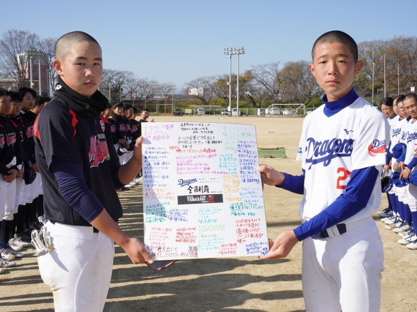 寄せ書きの色紙がドラゴンズジュニアチームへ贈られました
