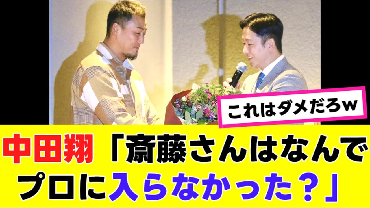 中田翔斎藤さんはなんでプロに入らなかった? 中田翔さんは30 日本ハム時代の先輩で甲子園でも対戦した斎藤ゆきさんと東省に登場した話題は 06 年夏の甲子園の対戦と移り当時の心境を語った中田さんは斎藤さんの投球をすごかったですね。まっすぐも強かったと。 僕マジで聞きたいんですけど、なんであの 時プロに入らなかったんですか?余裕で ドラフト1位でプロ入れたわけじゃない ですかとドストレート質問を投げ会場は大 爆笑となった。斎藤さんは夏は良かったん だけど春はそんな良くなかった。あんまり 自信がなかったのと大学に行きたかった。 後計戦に投げたかったと理由を説明。中田 さんは早って何すかと驚き素直な反応で さらに来を誘った。最後に中田さんは大学 進学を選んだからこそ今があるのかもしれ ない。 でもあのスタイルでプロに行ったらどうなっていたのかなと率直な思いを明かして締めくくった。これに対し次のような声が上がっている。 確かに考察でプロに入ってたらあのまま成長して体制していたかも。 大学出方を怪我して交わすタイルになったのが本当に惜しまれる。 高校野球だけでなく大学でも騙す制限度があった方がいいかもね。 中田翔は双剣戦をマジで知らなかったのか。でも彼らしくて良いね。 大体の人が思ってたと思うドラフト 1位かどうかは分からんが笑。 今のキャリアを考えれば大学進学は間違っ てなかったね。長い目で見たら成功だった と思う。よかったら高評価お願いします。
