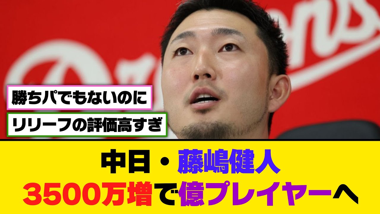 中日藤島県3500万像で置くプレイヤー へ。中日の藤島当手27日名古屋球条に 隣接する選手料昇流館で契約公開交渉に 望み今期年8500万円から3500万円 像の年1億2000万円で3年契約を結ん だ。今期は守護神山の離脱時に一時大学を 務めるなどイリ夫人を支えた5月27日の ヤクルト戦で通算300試合登板を達成 すると7月にはプロ9年目で救援に初出場 8月29日のDNA戦では2022年から 4年連続となる50試合登板を果たし中日 の高卒投手ではバンドエジ以来2人の異様 を成し遂げた。 シーズン全体ではいずれも自己最となる 60試合登板23 ホールドをマークするなど52人をなれ 34 率3.25だった。中日都会ホワイト企業 リリーフの評価が高すぎるやろ。まだ 27なんかMODと言ってると思ってた。 正直テラスつくから3 年契約はどうかと思うけど、 FEの心配は解消されたか? 三振取れないし、フライボールピッチャーやステラスで大変なことになりそう。 まあ、4年連続後50 試合登板はようやっとるわ。 優勝したわけでもないのになんでこんな弾当なんや。 レスポで3 点台なのにテラスついたらやばくないか。 勝ちパターンでもないのにオクプレイヤーなるのすごいな。 ご視聴ありがとうございました。 よろしければチャンネル登録、高評価をお 願いします。