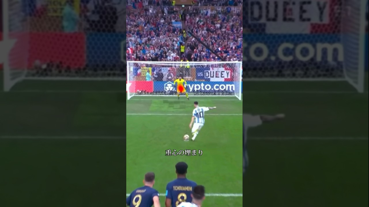 この動画を見てほしいワールドカップ決勝 アルゼンチン対フランスにて行われた メッシのPKこの後圧倒的な駆け引きで ゴールネットを揺らすが実はここにこの男 の驚くべき秘密が隠されているこのシーン ボールを基準に45°の位置から女装を 開始1歩目を強く踏み出すがその直後すぐ に体を起こすことで自身のスピードを 落としそのまま飛び跳ねるように2方3歩 とボールに近づいていくこの時キーパーを 見るとメッシのホップに合わせプレ ジャンプを行っていることが分かるこう することでキッカーとのタイミングを 揃えるのとに地面からの反動を利用し スムーズな動きを手にするしかし注目す べきはその踏み込みメッシュは最後の ステップにかけてさらに減速することで このリズムを狂わすキーパーはそれにつら れ思わず先に動いてしまい天候の効かない 重心の埋まりそれを全て観察するこの男 完璧とまで言える駆け引きだが継ぎだろう か実はメッシは女装を開始する前あること を行っていた5月5日に投稿するこの ロング動画でその答えが明らかになる