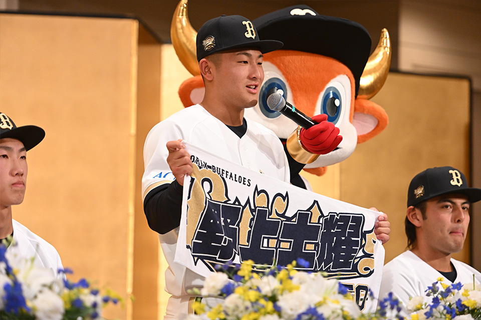 11月28日に行われたオリックス・バファローズ新人選手入団発表記者会見では、今年のドラフト会議で指名され仮契約を終えた10名の選手が顔を揃えました。福良淳一GMが「ワクワクプラン」と語ったバファローズの未来を担う新人選手たちを、広報宣伝部が用意したコメント台本とともにご紹介します。