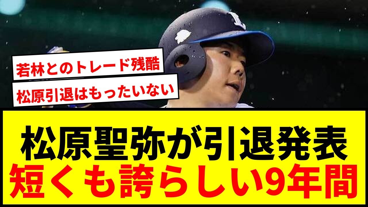 [音楽] 松原清渡るが引退発表。短くも誇らしい [音楽] 9年間。 西母戦力外となっていた松明渡が 28日自身のInstagram を更新し、天退を発表しました。松手は巨人時代に 2021年に135試合出場し、打率 2742本塁打15 等塁と高成績をマークしました。その後は出場機会が減少し、今年 6 月に若林人街と交換で部に入団していました。 松林選手は9 年と短くはありますがプロとして戦いた日々は僕の人生の誇りですと感謝を続っています。 大宮にハムセの50 ハの大ファインプレイ。あれが運命の別れ目だったよね。 あのハの大ファインプレイが開ければ波に乗ってけたハモだよな。 このところジャイアンツは一瞬の輝き祭りが参されます。去年今年と西武の打てない打撃人の中で存在を示さなかったのでは辛いかな。若林が人でいい働きをしている。トレードは時に残酷でもある。 [音楽] A 大宮の日ハム線大飛球を旗が取ってなかったら一定期間用されてたかも。 [音楽] 巨人でも2 軍生活だったので若林とのトレードは正直びっくりした。 台湾や韓国ならまだ活躍の場があると思っていましたがあっさり引退を決断。 [音楽] 若林のが活躍したよな。 あんたは天才だから。 ジャイアンツでの活躍も応援していました。トレードで西武に行かれた時はショック。 [音楽] マジか。もったいないけど厳しい世界だ。しょうがないな。 50 墓のファインプレイ関係を変えた。 [音楽]