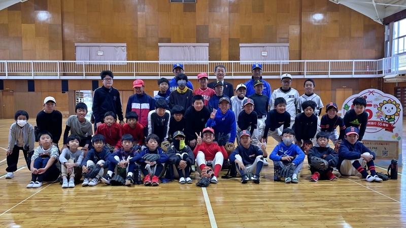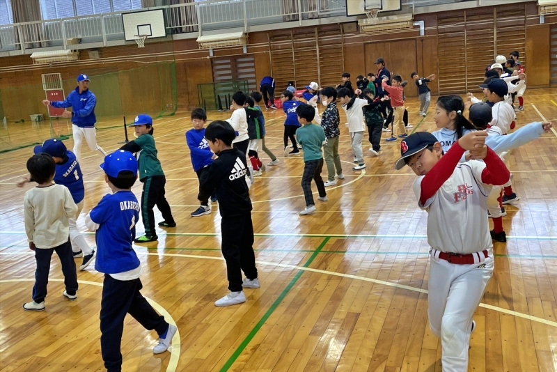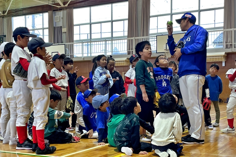 参加者の子供達は元気よくコーチの指導をしっかりと聞き、野球に取り組んでいました。
