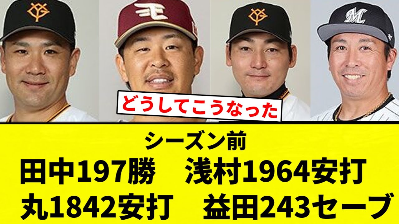 【結果…】シーズン前 田中197勝 浅村1964安打 丸1842安打 益田243セーブ【プロ野球反応集】【2chスレ】【なんG】