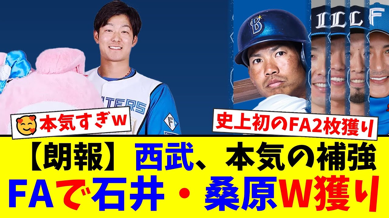 西武ライオンズ、球団史上初のFAダブル獲りでファン歓喜!日本ハムから石井一成、DeNAから桑原将志を獲得し、来季へ向けた本気の大型補強にパ・リーグが騒然!【プロ野球ファンの反応】