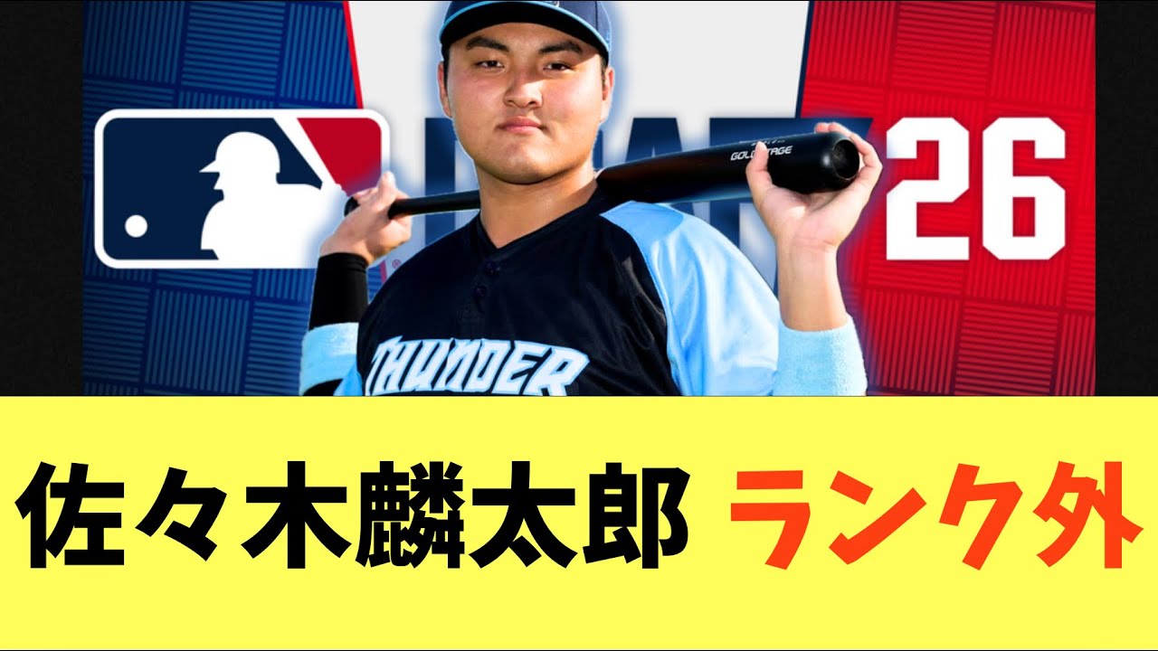 [音楽] リ太郎を判明する。 MLB公式サイトによる26年候補トップ 100 が発表され、スタンフォード台の佐々木り太郎内ヤ種はランク外が判明。同 7月に開催される26年MLB ドラフトで指名対象。 NPBドラフトでソフトバンクから1 位指名を受けているが、返桃期限は来年 7月末までMLB ドラフトの結果を待ってからの指名に最終的に決断することができる。 まさかのランク街ホークスにとっては朗法 だけど日本だけが過剰に期待してるだけか 。日本はまずは打てればいいからな。 メジャーは総塁守備の総合評価。日本の ドラフト1位に相当するのが総合30巡目 まで。2位に相当するのが総合60巡目 まで。トップ100以内ということは3 から40米以内。これはホークス入団の 可能性だかそう。まだシーズンも本格化し てないし、ここからリーブ戦で打ちまくっ たら一気に上がるパターンある。トップ 250にも入ってない。MLB 上意使命はかなり低そう。 アメリカ基準ドライすぎて草。ファースト戦はアーで見ると価値低いから当然の結果か。 [音楽] でも素材は機械値なことは変わらない。ホークスが育てて証明したるオメガ [音楽] 清屋でも時間かかったしどうなるか。 り太郎も来たらコオフ。両漏れの実質ドラ 1位3 人獲得。佐々木り太郎再現選手り太郎。 MLBかNPBか を会長指導したくてうずうず。ご視聴 ありがとうございました。ホークス情報 を上げていきますので是非チャンネル登録 をよろしくお願いいたします。