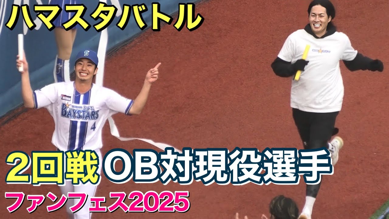 さあ、第1勝者は レースに今年加し、そして 仕れる場面で多くの道を決めてきた森選手 です。 さあ、選手と大和選手が大和さんが対決 するということになります。改めてになり ます。皆さん、グラップで応援されてる方 はお座りいただきますでしょうか? ご協力よろしくお願いいたします。ライト 側にいらっしゃる方ですね。宇宙間校に いらっしゃる方、あ、ご協力いただきまし てありがとうございます。が見れる形で さあ、それで ベイスターズチーム対ベズ選手チームよ スタート。さあ、さあ、かなりさ、どうだ ?選手がって さ、早い。さあ、選手の方横浜高校の 先後輩対決勝ったのはバターライ。 自由勝利ということになりました。 も負けてしまいましたがコメントお願いします。 そうですね。あの高校の後編でたんで、え、今日はすごい、え、楽しかったです。 はい。 僕も、え、先輩のさ、楽しかったです。ありがとうございました。 横浜先輩後輩という関係でいります。破れましたがウィズベースターズチームにも皆さん拍手をお送りください。ナイスランでした。 さあ、ということでトーナメントが選手 チームが改めて今ビに出ておりはい。