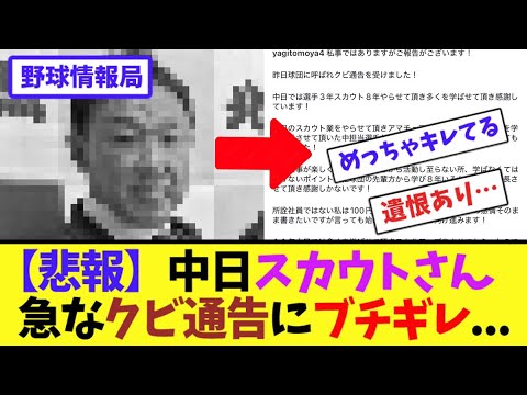 【悲報】中日スカウトさん…急なクビ通告にブチギレ【ネット情報局】