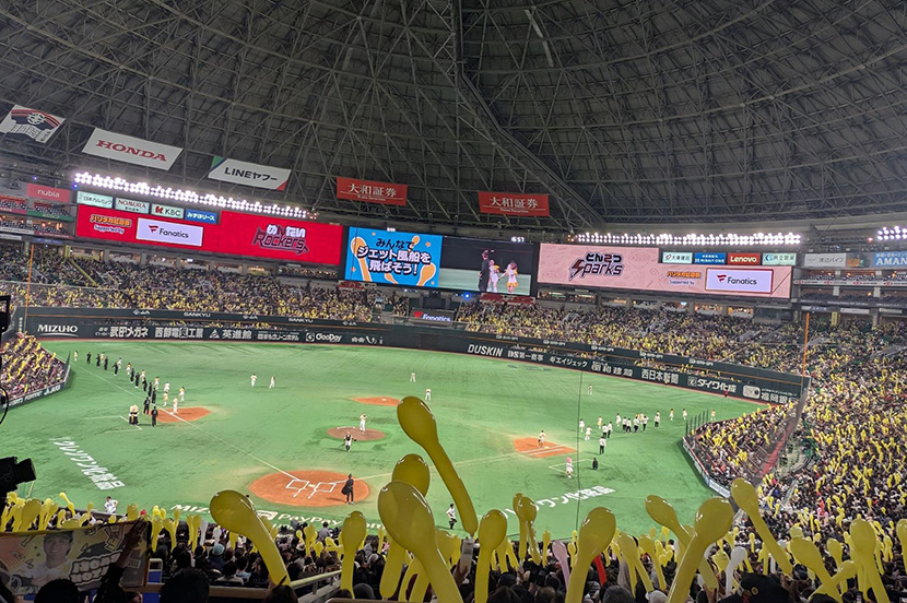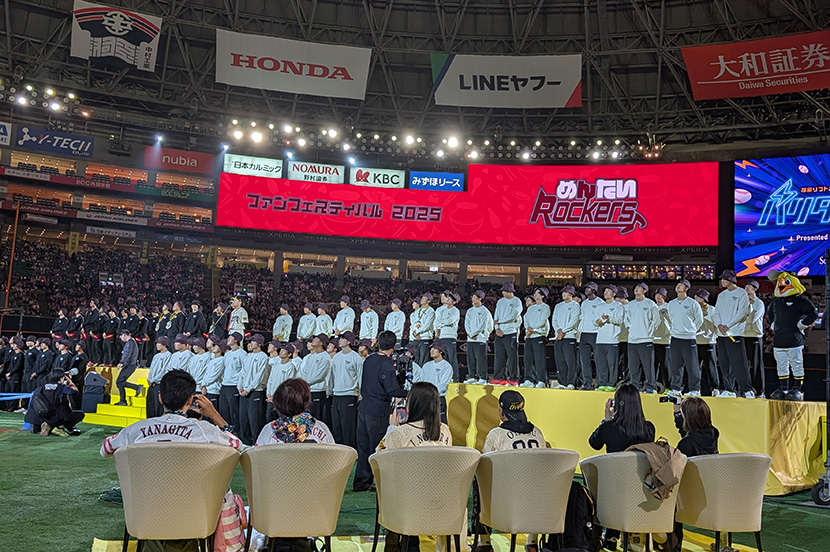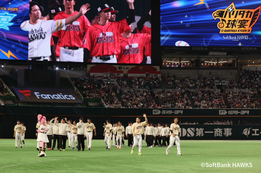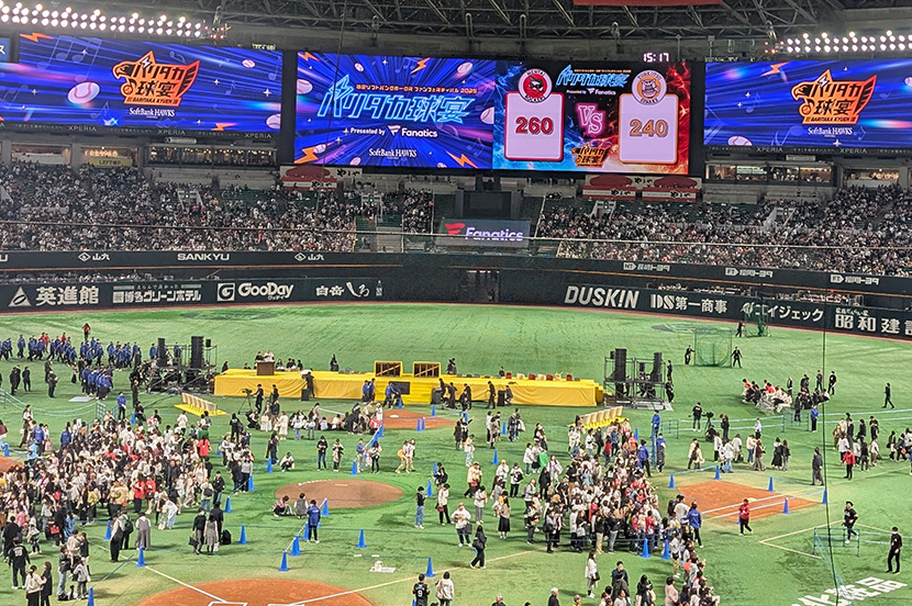 11月24日、みずほPayPayドーム福岡がにぎやかな “宴” の舞台に変わりました。「打って、歌って、踊って!バリタカ球宴 Presented by Fanatics」と題した今年の福岡ソフトバンクホークスのファンフェスティバルは、「音楽とスポーツの宴」をテーマに選手とファンが一体となって盛り上がれる企画が盛りだくさん。午前中に行われた優勝パレードに続いて、会場の様子を取材してきました。