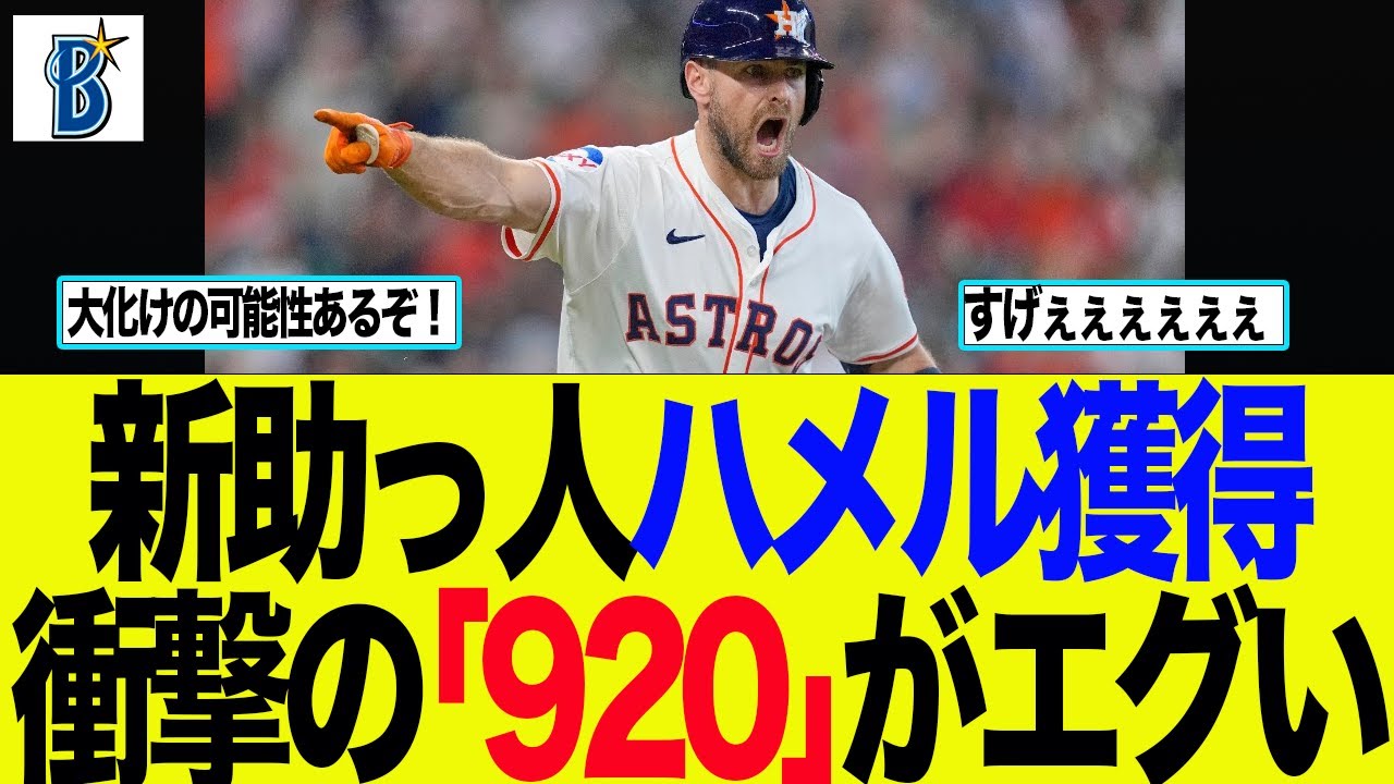 今回の動画は新助っ人ハメル獲得 衝撃の「920」がエグいとベイスターズファンの反応をまとめた動画内容になります。