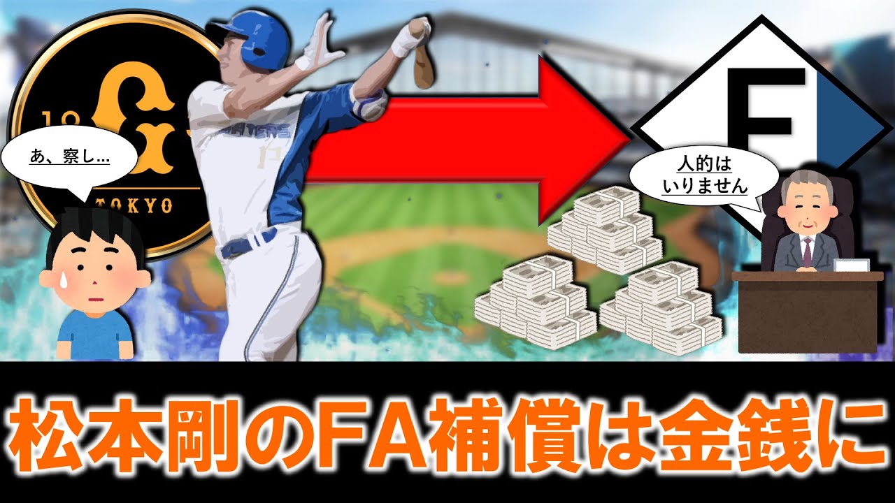 はい、プレボル、どうも野球人です。松本 のFA保証は金銭にということでござい まして、はい、ま、今日ですね、12月9 日、ま、この後ね、注目のこう現役 トラフト控えてるわけでありますが、ま、 ただそれを前にですね、松本号選手のFA 保障、ま、一体どうなるんだっていう ところが注目されておりましたが、ま、 どうやら金銭になるという報道が出ており ます。まだね、正式な発表は今の段階で出 ていないので、ま、過去のケースとかを 見ると、ま、実はね、人的業者を誰かしら 取るとか、ま、そういうパターンもなくは ないんでしょうけど、ま、でもほぼほぼ 金銭になることはね、確定なのかなという ところではありますし、ま、これを受けて ね、色々な声が上がっているのかなという ところもありますんで、ま、その辺も含め ね、お話していきたいと思います。では、 まず記事の方からチェックしていき ましょう。 はい、松本号の保証は金銭のみか。日本 ハムが巨人へFA席した松本5号林の保障 について金銭保障を求める報酬を固めた ことがよくわかった。巨人と松本の選手 契約提結がNPBから交示されたのが11 月28日でそれで4日後となる今月2日に 巨人から日本ハムへ人に関するプロテクト 名簿が到着。その際に日本ハムの球団カ部 は巨人からリストを受了しました。人手 保障かどうかの検討はこれからです。結論 は越にならないと思うと話していた。パコ 3度人デを求めたことがあった日本浜田が この日までに共団内で剣道を重ねた結果 今回は最終的に人デは求めないことを決め た松本号は今期の推定年法が1億 1000万円で金銭&人書が必要になるB ランクだった。これで日本ハマー巨人から 松本号の年方60%にあたる金銭を保証し てもらうことになるということになって おります。はい。というわけで、ま、日韓 スポーツによるとどうやら日本ハムは松本 選手の保証のみに固めたというところで ございます。ま、今シーズンね、不調って いうところもありまして、ま、まさかの FA権講師、ま、どこもね、手を上げない んじゃないかという風にも言われていた中 で、ま、巨人が来たというところではあり ました。ま、ただね、その中でもやはり 気明かりだったのがFAの保証、ま、B ランクっていうところもありましたんで、 人保障金銭保証が発生してしまうという ところもあったんで、やはりファンからは ね、どうなんだっていう声が色々こう言わ れておりましたし、ま、実際ね、契約 決まってからもかなりファンの方はそこは 心配だったのかなというところもあるん ですけど、ま、ただ今回金銭という報道が 出ておりますし、ま、もしそうであればね 、もうお金だけで松本選手を取れたという ところもありますんで、ま、この辺は全然 ね、受ける印象も違うのかなというところ もありますし、ま、ほっとしてる方もね、 非常に多いのかなというところではあるん ですが、ま、ではそんなね、松モ選手の 保証ではありますが、ま、改めてちょっと こう全体的な流れも含め見ていきましょう 。 はい、ではマズモ選手の保証っていうとこ で見ていきましょう。まずね、マズモ選手 人デ保障の流れっていうところをチェック していくと、正式にね、契約合意の発表が あったのが11月26日で、こっから契約 工事が11月の28日にありました。で、 こっからですね、本来であれば2週間以ナ にプロテクト提出、40日以内に人定5章 発表というね、ルールがあります。ま、 ただ工事後からですね、わずか4日後、 12月の2日にプロテクトを提出で、そっ からちょうど1週間の12月9日に金銭に 決めたと報道が出ております。ま、流れ からしてかなりね、トトン拍子に行ったな という印象ではありますし、巨人も日本 ハム側も今日行われる現役ドラフの結果を ね、バたなかったっていうことは1つ興味 深いところかなという風に思います。で、 人理書あれだとね、4400万円の金銭で なしだと6600万円。これが発生すると いうところではありますんで、ま、その 差額で言うと2200万円。ま、モド年方 がね、そこまで大きくないのと、ま、B ランクっていうところもありますんで、ま 、金銭だけだとしてもですね、ま、そこ まであんまり変わらないっていうところも ありました。で、さらに巨人のね、主な プロテクト漏れるラインの選手っていう ところ、ま、こういう選手たちがもしかし たら漏れる可能性があるんじゃないかと いうところも言われておりましたし、 やはりこうやって見ていくとね、結構いい 選手が多いような印象は受けますし、ま、 この中でおそらくこうプロデクトに入るの は数人っていうところはあると思いますん で、ま、誰かしらね、本来であれば漏れて いるんだろうなというところはありますし 、ま、この差額を考えれば普通であればね 、人的保障一択なのかなというところも ありました。ま、ただですね、今回こう 金銭のみの保証が報道されておりまして、 ま、人手保障は取らず6600万円のね