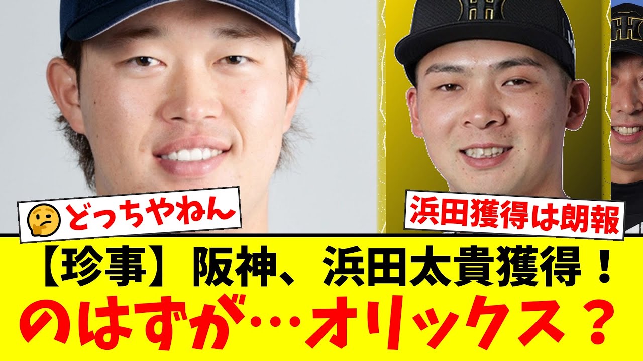 現役ドラフトで阪神がヤクルトの浜田太貴選手を獲得!しかし、まさかの記事で獲得球団が「オリックス」と誤報され、ファンは「どっちなんだ!」と大混乱。右の大砲の加入を喜ぶ声、そして放出される井上広大選手へのエールが交錯する、ネット上の反応をまとめました。