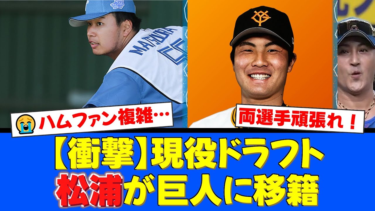 衝撃現役ドラフト松浦が巨人に遺跡 [音楽] 9日に行われた第4 回現役ドラフトでファイターズに新たな仲間が加わりました。巨人の菊手がファイターズへ移籍します。一方で寂しいお知らせもあります。待の若手松浦手が巨人へ移籍することになりました。 松浦投手は2003年生まれ、身長 186cm、体重103kmの大型ハサワ です。150kmを超える直球が武器で パワータイプの投資です。大阪党員では エースナンバーを背負い21年ドラフト7 位で入団しました。新監督も過去に 思い切りのある投手 とその潜在能力の高さを評価していました 。期はファームで19登板。防御率 3.41を記録。37イニングを投げて 35振を奪っていました。ファンからは [音楽] もったいなさすぎる。間違いなく負ける とその才能を惜しむ声が多数上がっています。ファイターズを離れるのは残念ですが松浦党手の新天地での活躍を心から応援しています。 そしてファイターズに来てくれる菊投手 里高党員横浜台を経て21年に苦星 ドラフト6位で巨人入り、今期は7登板で 一勝、防御率1.80と結果を残してい ます。この遺跡が両選手にとって 素晴らしいものになるよう、そして菊投手 がファイターズの力になってくれることを ファンは期待しています。ようこそ ファイターズへ菊投手共に戦いましょう。 皆さんはこの遺跡どう思いますか?是非コメントで教えてください。 [音楽] え、松浦ケイト出すの?サワン足りないって話じゃなかったってマジでもったいなくないか? [音楽] F16気持ちは分かるがファームでの率 3.41という数字を見ると1 軍定着にはまだ課題があったのも事実環境を変えるのがプラスになる可能性もある。 [音楽] F16本当にそうよね。 新監督も期待してたのに寂しいわ。でも巨人でも頑張ってほしい。 [音楽] 松浦投将来性のある大型ワめちゃくちゃ楽しみやん。菊もハムで頑張ってくれ。 [音楽] G1 さん、いい投資だから大事にしてやってくれよな。菊投手にはうちで活躍してもらってお互い良い遺跡だったと言えるようにしようや。 松元号の人的保障を選にして現役ドラフトでこれってなんか変わらで話がついてたんじゃないかと勘ってしまうわ。 F15 ずグズグとか言われてるけど結局は普通のトレードみたいなもんでしょ。決まったことだし応援するだけ。 また有望な若手が巨人に行くのか。最近このパターン多くないかファンとしては複雑な気持ちになるよな。 [音楽] F02 松浦君にとってもチャンスだと思うわ。新天地での活躍を心から応援しましょう。菊機投集ようこそファイターズへ。今期ファームで防御率 [音楽] 1.80 は期待できるイリー不尽の救世士になってくれ。 フじさん。それな菊に期待しかないファイターズのユニフォームに会いそう。松浦君寂しいけど応援してるからね。 [音楽] 怪我だけはしないでたくさん活躍してね。 [音楽] 結果的にトレードみたいな形になってて草。まあでもこういうので戦士の野球人生が変わることもあるからな。 [音楽] 北浦もいなくなって松浦もいなくなって左の中継が本当に心配になってきた。大丈夫かな? F16 大丈夫。新しい戦力がカバーしてくれるはず。菊投手の活躍を信じましょう。 [音楽] この遺跡が基地と出るか京都出るかなのだ 。このチャンネルでは日ハムファンの反応 をまとめてます。チャンネル登録よろしく お願いします。外公開は終わらない。 [音楽]