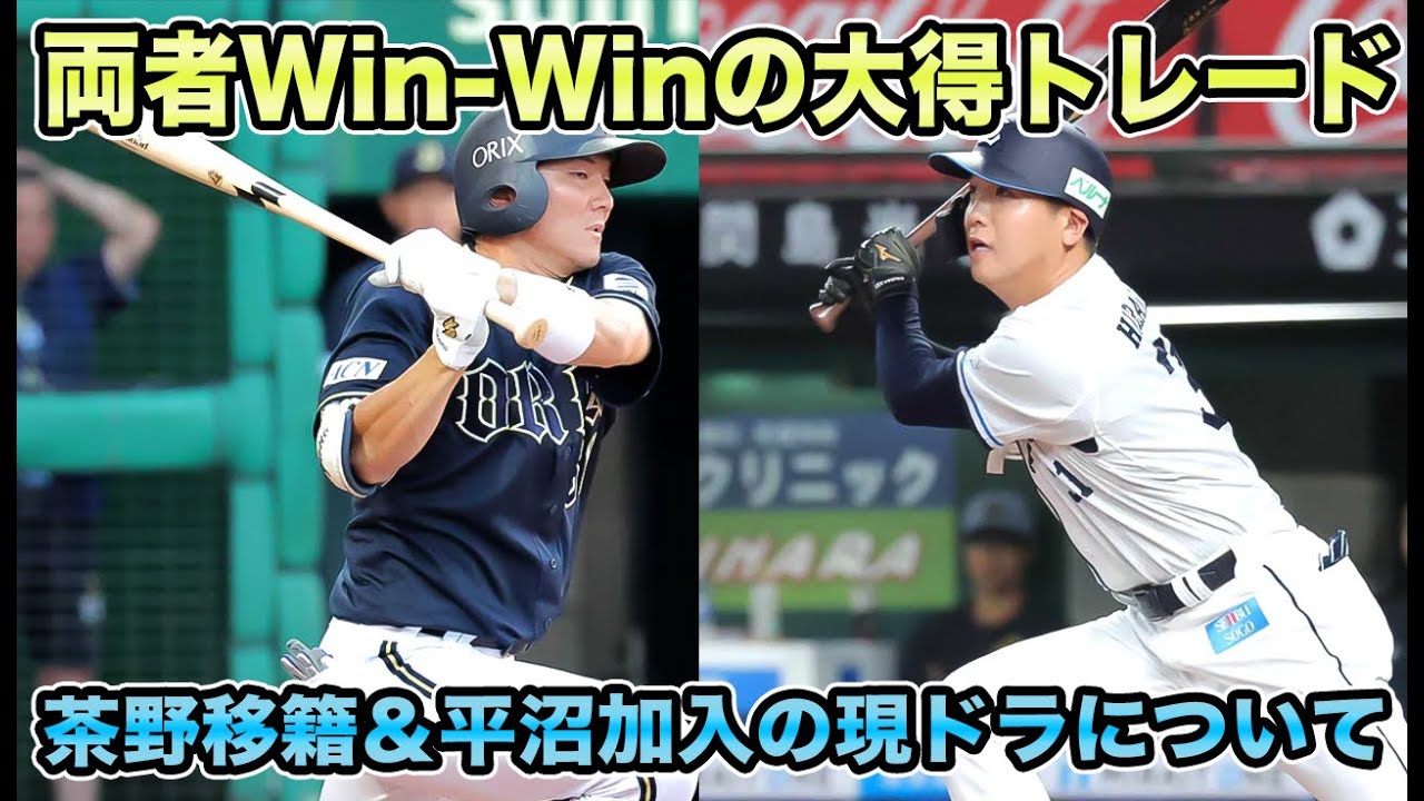 今年も無事現役ドラフトが、え、開催され ました。今年もですね、生配信をさせて いただきましたけれども、たくさんの方に 来ていただきまして本当に感謝しており ます。え、ま、5万人以上の方がですね、 来ていただきまして、え、チャンネル登録 者もですね、200人ぐらい、え、その だけで、ま、登録しましたよという風に 言っていただいて本当にあの、嬉しかった んですけれども、ま、残念ながらですね、 予想に関しては、え、佐藤さん、高木豊か さんの3名に一歩わずということで予想で 2名しか、え、当てることができなかった わけなんですけれども、ま、それでもです ね、長時間にわたって、しかも12球弾の 、え、野球ファンの人たちとですね、交流 できたこと非常に、え、楽しく、え、配信 をさせていただきましたので本当にありが ありがとうございました。ま、そんな中で ですね、今回は現役ドラフトということで 、え、オリックスが獲得をした選手、 そしてオリックスが放出した選手が、え、 判明しました。え、改めてですね、今年 行われた現役ドラフト。一体どんな選手が オリックスにがあって、逆にどんな選手が ですね、オリックスから育っていったのか 、この動画ではそんな、え、ところを見て いきたいなという風に思っております。 はい。まずなんですけども、オリックスが ですね、獲得した選手がですね、埼玉西武 ライオンズから平沼ショーター選手になり ます。ドイツリーグの西武ライオンズと いうことでございまして、昨年のホンダ 啓介に続いて2年連続、え、西武と やり取りをすることができたということで ございます。ま、森友選手がですね、FA 移籍してから、ま、人的の跳躍、そして 去年の本田啓介と、え、ありましたけれど もですね、これだけでこう終わってしまう のはすごく寂しいなという風に思ってまし た。ドイツリーグでもですね、日本ハム だけじゃなくて、え、西武もですね、同じ こズブズブというか縁のある球団になって 欲しいなという風に思ってたので、今年も 西武と取引ができて非常に1ファンとして 、え、嬉しかったなという風に思っている んですけども、平マ選手が一体どんな選手 なのかというところでせ、今年の成績と これまでを一緒に振り返っていければなと いう風に思っています。え、2015年に ドラフト4位で日本ハムに入団をしたこの 、え、平選手なんですけども、当時はです ね、当手とショートで、ま、二流という風 な、え、ま、評判で、ま、有名だったそう です。ま、栗山監督もですね、平沼選手は 、ま、どうしても当時欲しかった選手と いうことで、よくこの4位まで残ってくれ たと、え、いうことで、ま、当初やりたい という思いも聞いてるので、気用法はこれ からいろんな話をしていきたいなという風 に言っているという風に言ってました。 そして大ブスカウトもですね、あの広沼 選手は打撃がとにかくすごいということで 甲子園優勝投手と、え、して勝負運持って いて、え、素人から内野手始めてますけど も、え、非常に、え、強いものを感じて いるというところで入ってから二刀流は ちょっと考えていきたいと、え、いう風に 言ってました。相手内足として指名しまし たよという風なことを言ってたんですが、 え、平選手としてもですね、え、ま、そう いった形で入団をしましたけれども、6年 後に、ま、日本ハムがですね、佐藤、え、 木村、そして、え、西武の方でですね、え 、用意しまして、日本ハムは、え、これ平 選手と区門投手2対2のトレードをしまし て、両チームの補強ポイントが合致したと いうことで、渡辺GMが、ま、こう トレードをね、え、したわけなんですけど も、本人はね、え、当時はですね、もう すごく、え、チャンスだと思ってるとと いうことで、1人のこう野球選手として ですね、え、スキルアップできるすごく、 え、いい機会だと思っています。という ことで、その当時のトレードについて語っ ていました。ま、正直ね、本当にやる気と 気持ちでいっぱいですという風なこと、え 、言っていましたけれども、育成から いろんな経験を日本ハムネはさせてもらえ たと、え、いうところで西武のイメージは ここの能力が高くチーム力もあって、まず 試合に出るところから始めないといけない と一軍で試合に出続けられるように1日に 頑張りたいと思います。という風に コメントを残してました。え、今年はです ね、代打の霧札としてですね、平沼選手 非常にこう活躍をしておりまして、1軍で は2割一部8輪、OPSが495という ことでホームランこそないんですけども、 え、オリックスファンの皆さんはですね、 平沼選手に対してあまりいい印象がないん じゃないかなという風に思うんですね。え 、それも当然なんですけども、今シーズン 対オリックスに関してはですね、なんと3 割4輪と、え、いう風な成績を残しており ます。まあ、今年、あのベルナドームで クリアレン投手が先発