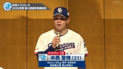 中日が中西聖輝、櫻井頼之介らドラフト指名選手たちの背番号を発表!!! 『2026年度 中日ドラゴンズ新入団選手発表会見』が行われる!!!