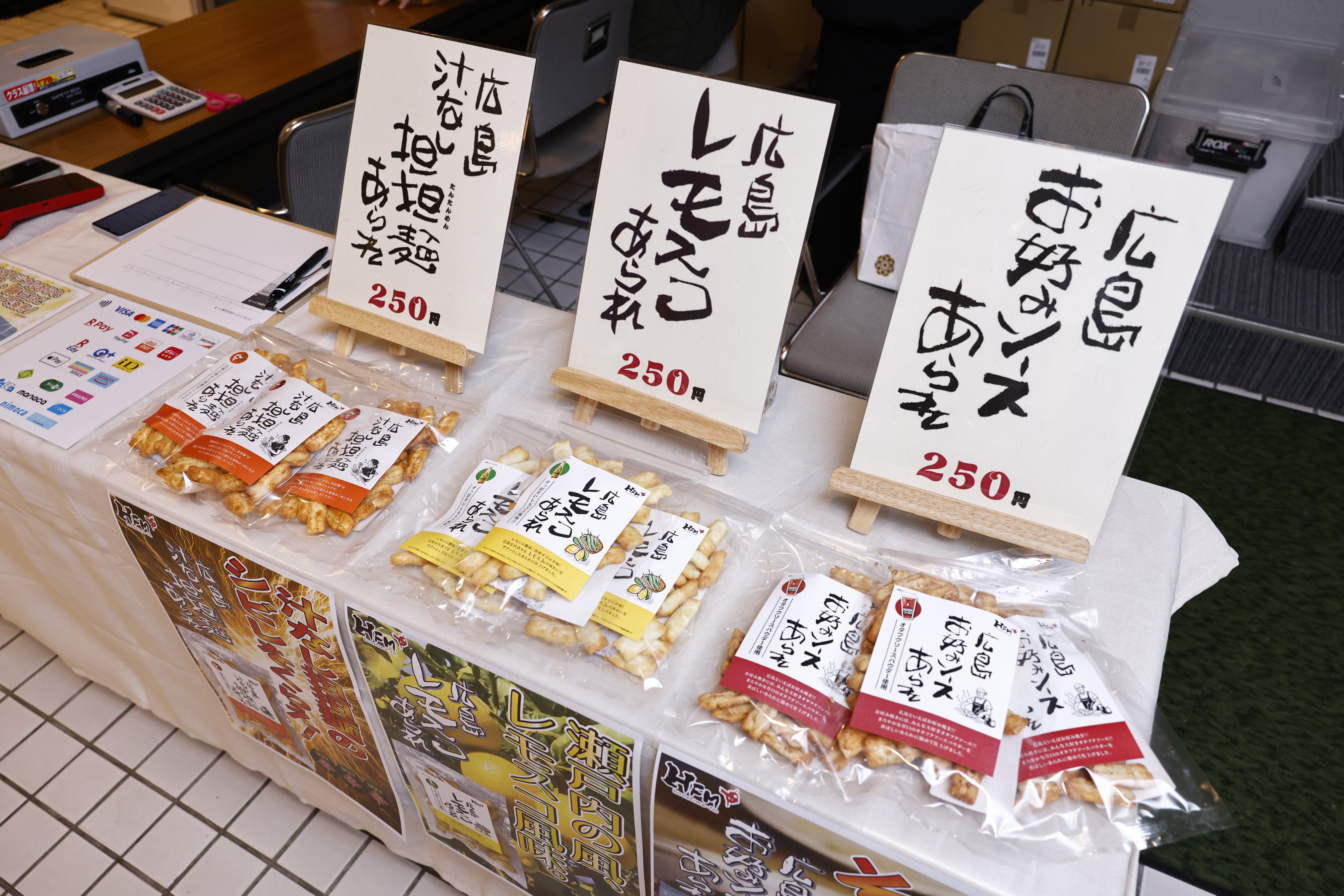 「広島汁なし担担麺あられ」「広島レモスコあられ」を数量限定で販売しました。