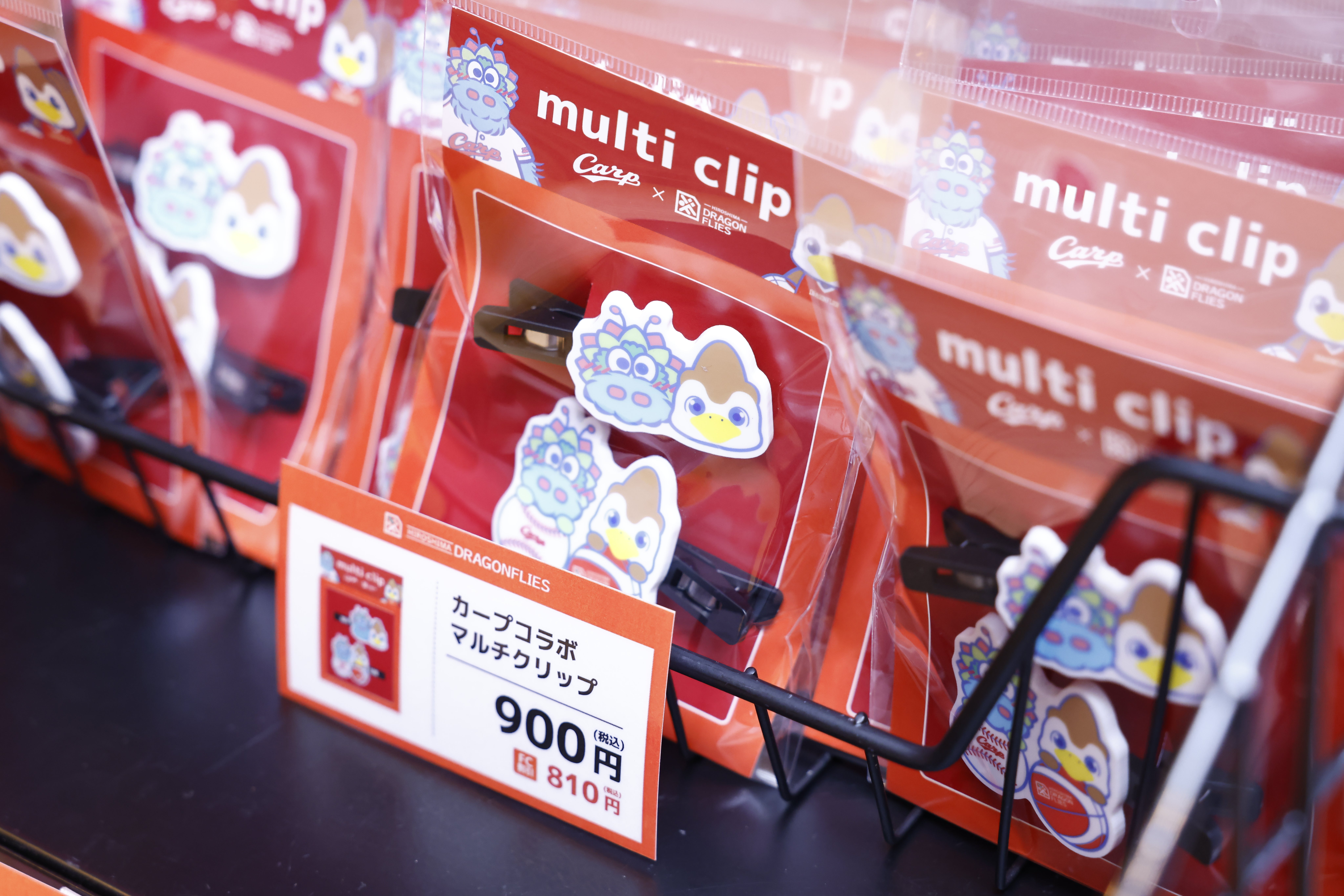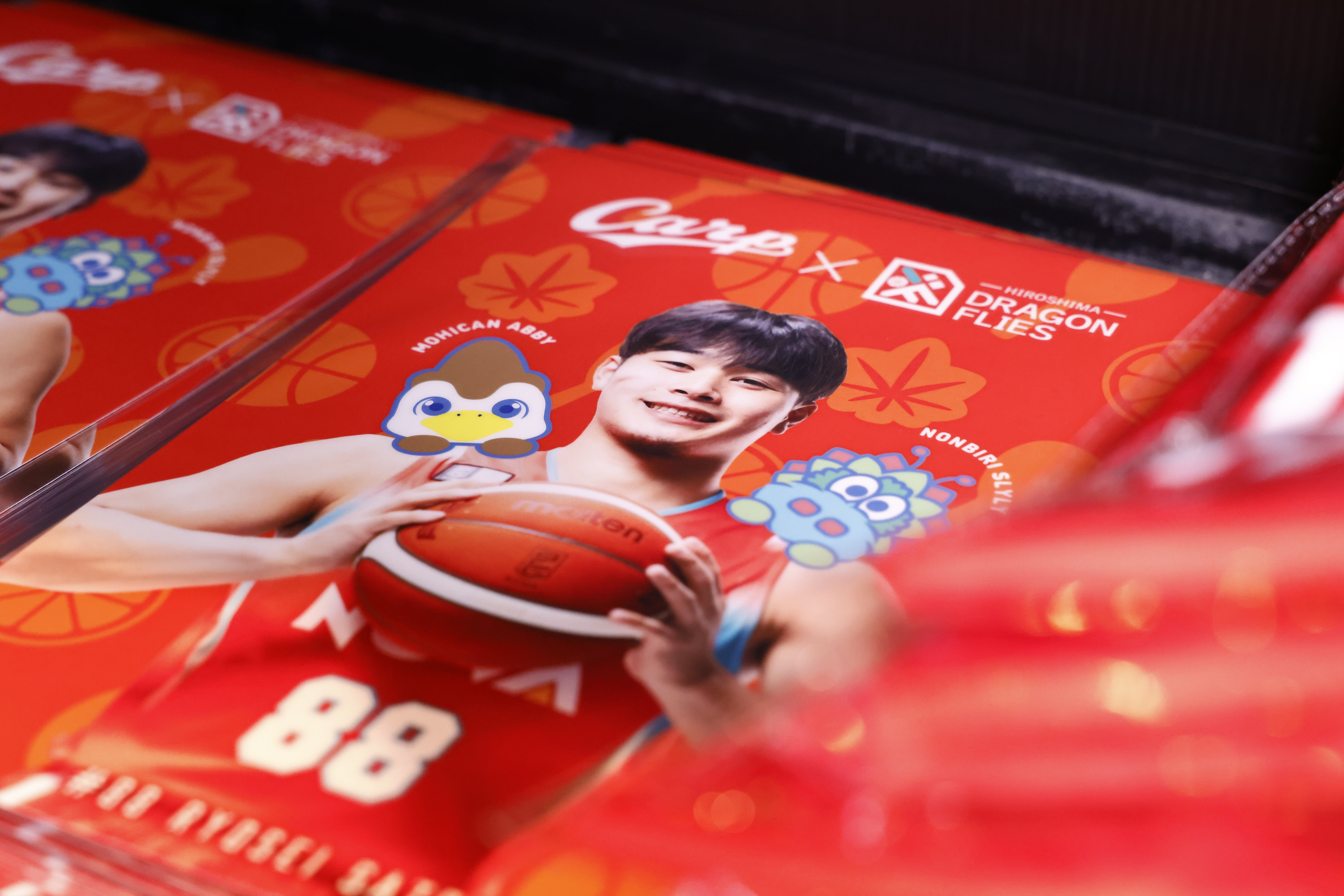 今節では、「カープコラボDAY」開催を記念して、広島東洋カープ×広島ドラゴンフライズのコラボグッズを販売いたしました。新デザインのベースボールシャツ、タオルやトートバッグ、ペンライトの着せ替えチューブなどコラボ限定デザインのグッズを販売いたしました。