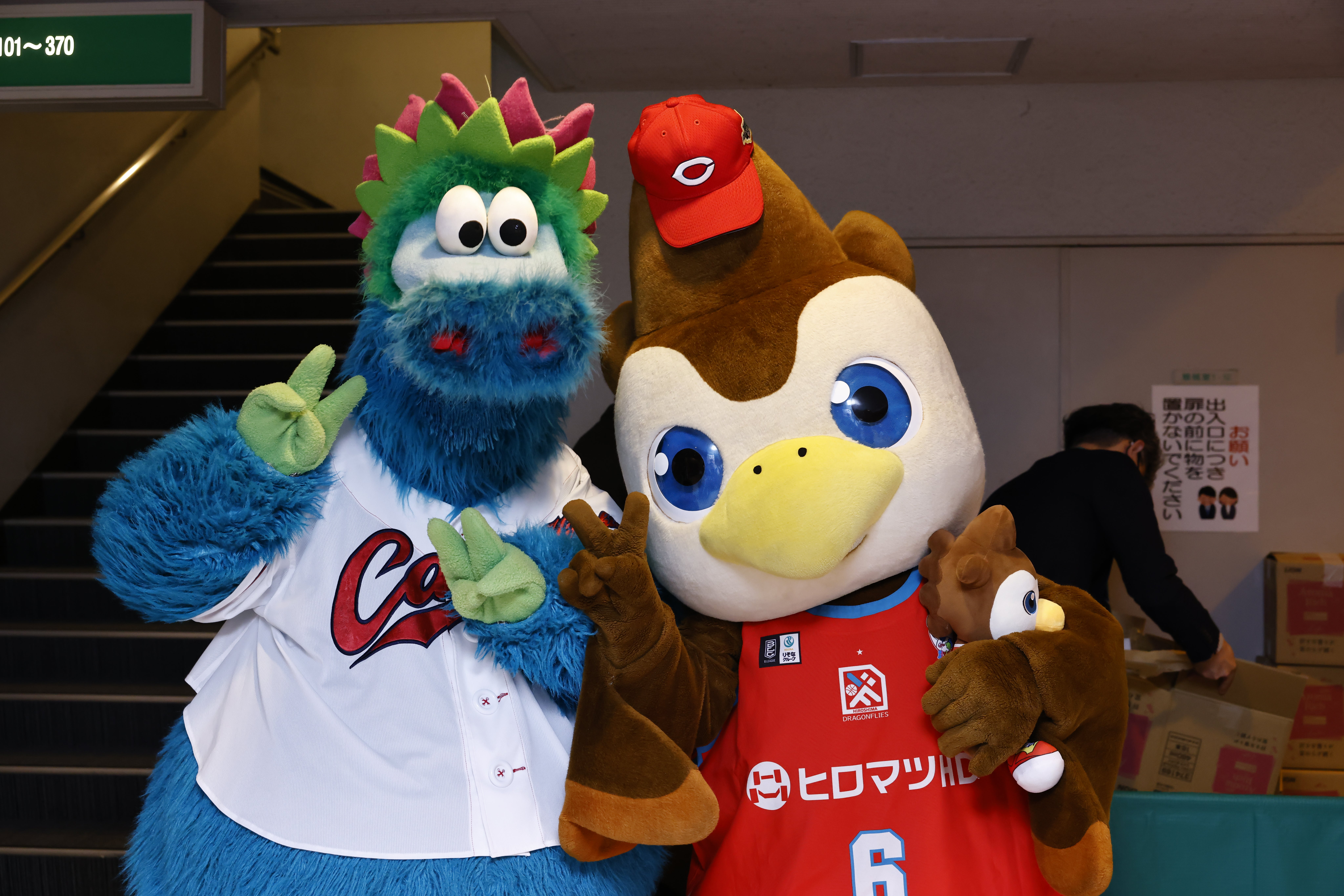 カープコラボDAY開催を記念して、小園海斗 選手・スラィリー・モヒカンアビィ・D*Flareによるプレゼント投げ込みを実施いたしました。
