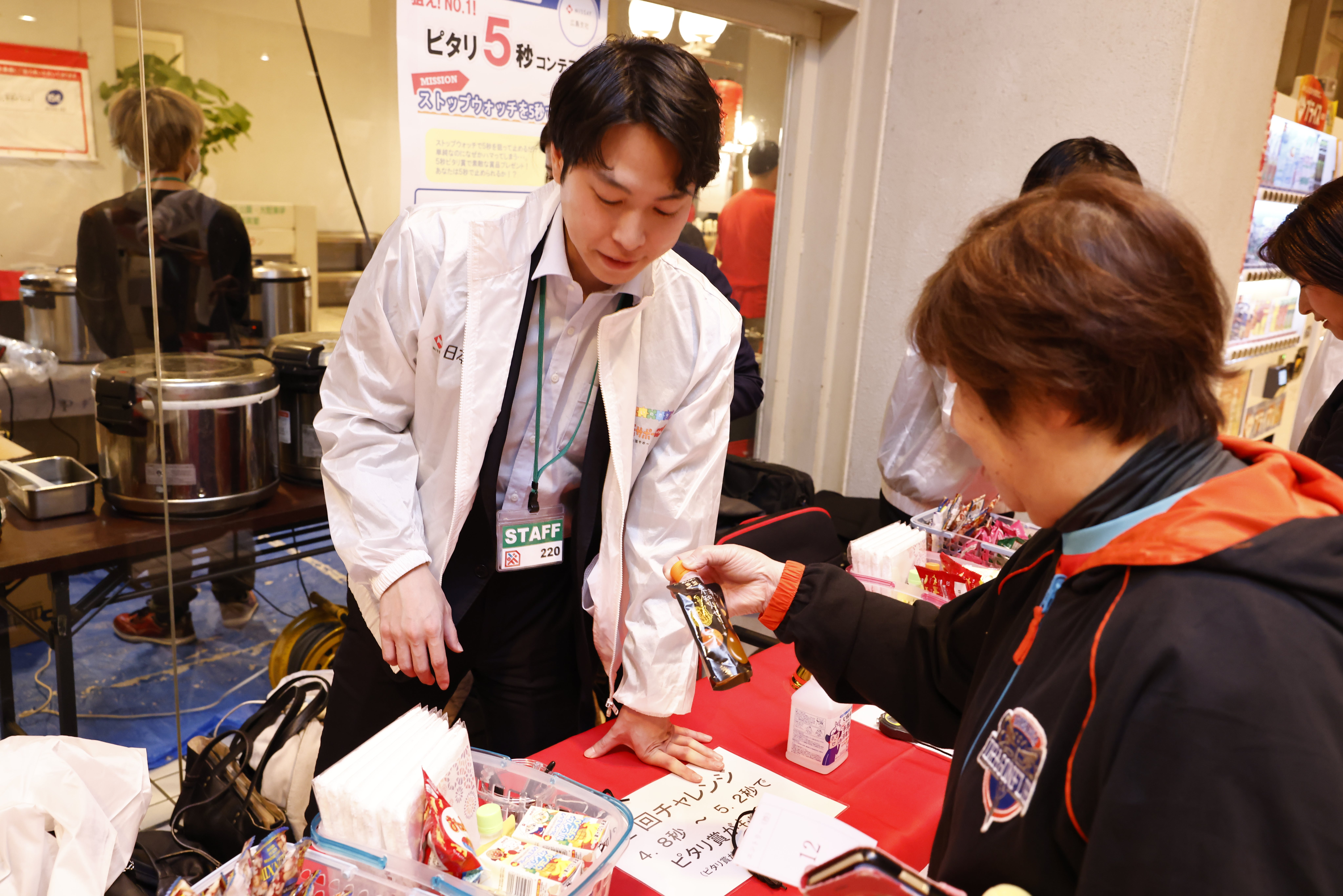日本生命ブースでは、試合前に「握力コンテスト」「ストップウォッチピタリ5秒コンテスト」を実施し、ハーフタイム中には「血管年齢測定」を実施しました。コンテストでは、結果に応じて素敵な景品をプレゼントいたしました。