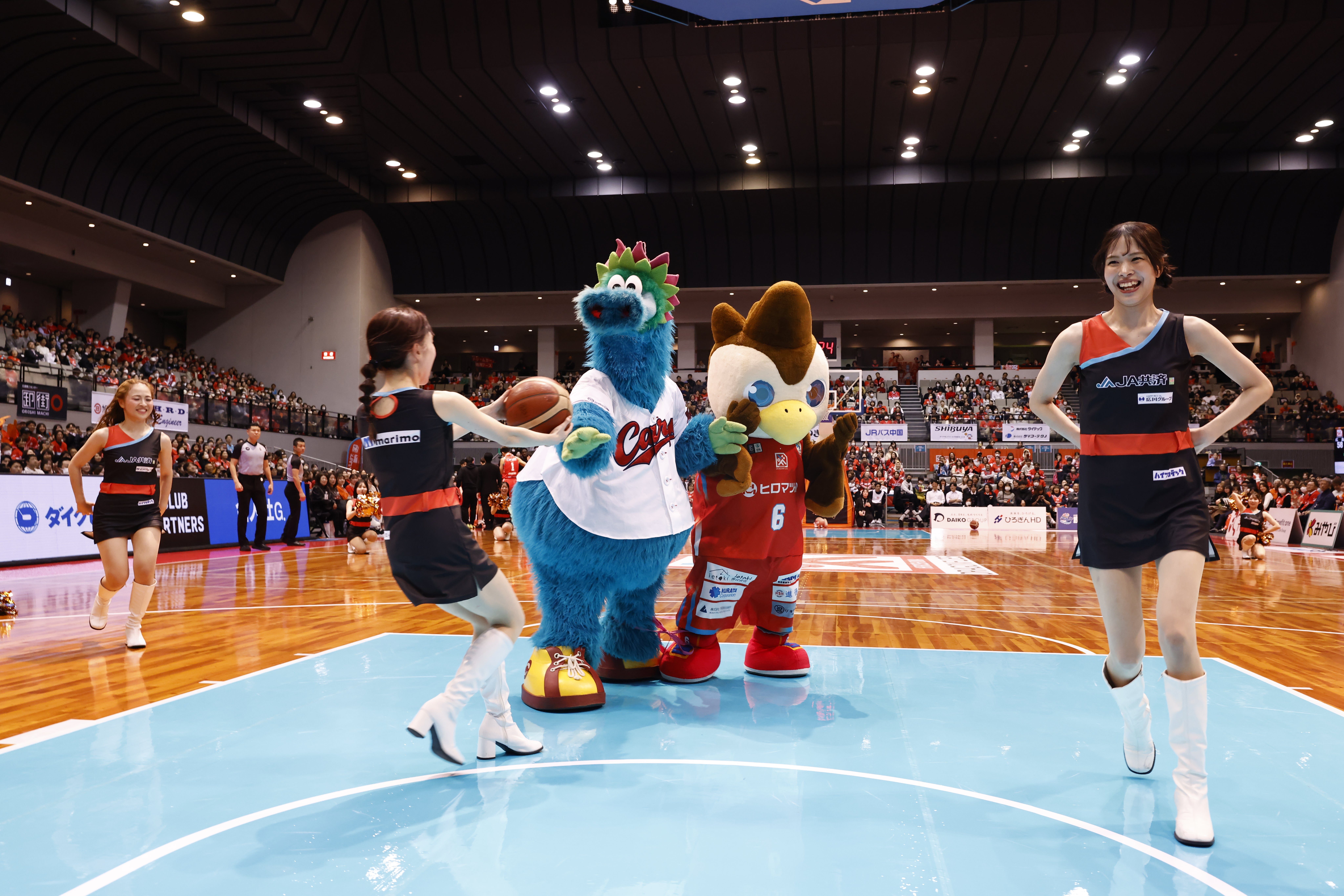 ハーフタイムでは、カープコラボDAY開催を記念して事前にお申込みいただいたブースター・D*Flare・モヒカンアビィ・スラィリーによるCCダンスが披露されました。