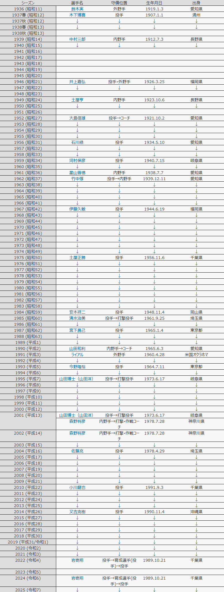 歴代の背番号16です。