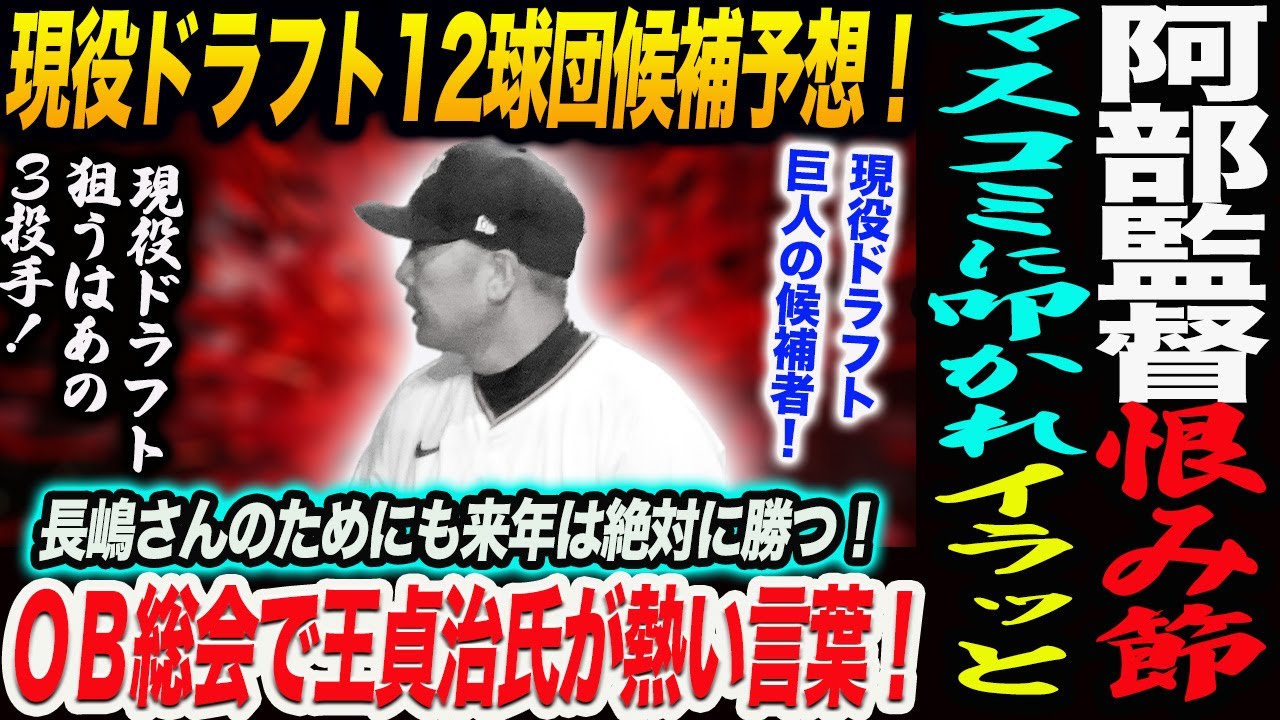 阿部監督恨み節!マスコミに叩かれイラッと!現役ドラフト12球団リストアップ候補予想!現役ドラフト狙うはあの3投手!現役ドラフト巨人の候補者!読売巨人軍 ジャイアンツ 巨人 GIANTS 阿部監督