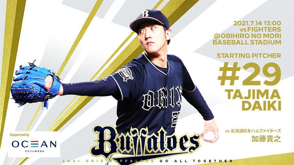 #7月14日 #北海道日本ハム戦 #予告先発投手 #田嶋大樹 #帯広の森野球場 #13時00分試合開始 #Bs2021 #buffaloes #baseball #ORIX #プロ野球 13時00分試合開始7月14日baseballBs2021buffaloesNPB Pacific LeagueOfficial MediaORIXORIX BuffaloesORIX Buffaloes Official Mediaオリックス・バファローズプロ野球予告先発投手北海道日本ハム戦帯広の森野球場田嶋大樹 NPBHUB.COM | The Fanbase of Nippon Baseball & Nippon Professional Baseball