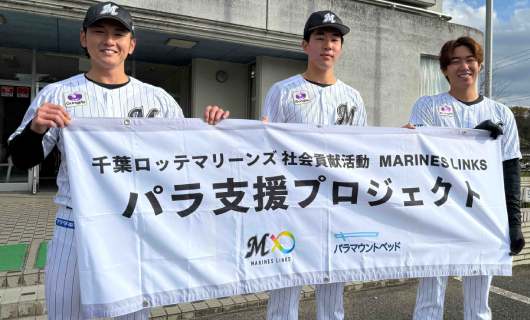 千葉ロッテマリーンズの吉川悠斗選手、立松由宇選手、中村亮太選手の3名が12月10日(水)、社会貢献活動プロジェクト「MARINES LINKS」の活動の一環として、八日市場特別支援学校を訪問した。