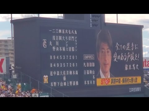 20240923 試合直前!阪神タイガースOB能見篤史さんが出演! くたばれ等の誹謗中傷、侮辱的な替え歌禁止のCM 試合前 ノウミサン@阪神甲子園球場・レフト外野