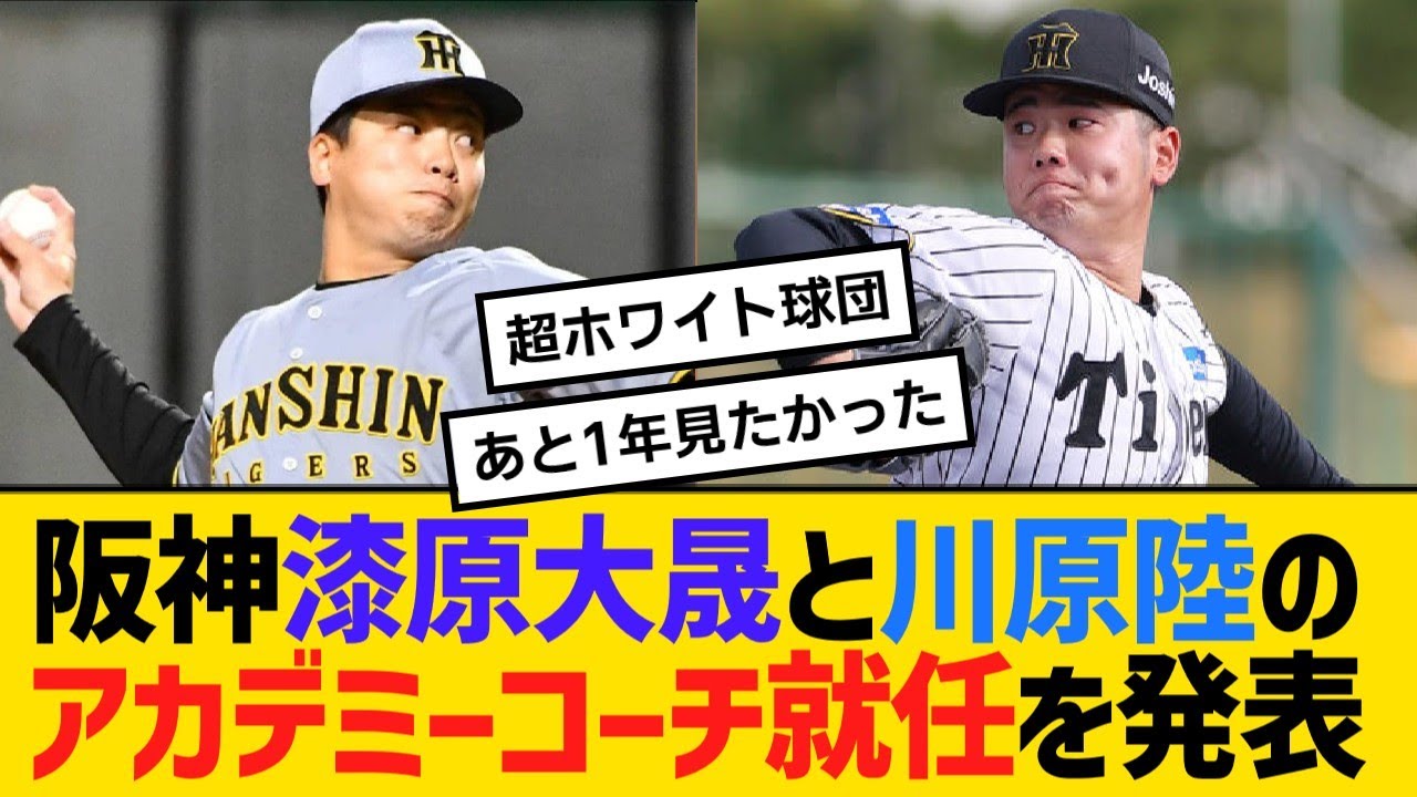 阪神・漆原大晟と川原陸のアカデミーコーチ就任を正式発表!【野球】【反応】【考察】