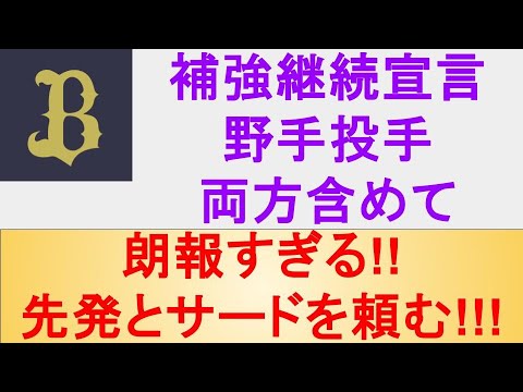 スリーツーワどうも皆さんオリックス応援 隊チャンネルです。はい。え、本日ですね 、え、オリックス団の方からね、え、ボブ シーモア選手を獲得したとね、え、正式の 発表がございまして、ま、先ほど動画あげ させてもらったんですけどもね、え、それ に続く形の、え、2本目の動画投稿となり ます。え、ま、動画投稿した後にね、え、 シー馬選手のね、え、情報を追うために、 ま、記事とかね、え、色々見ていたって いうとこではあるんですけども、そこでね 、え、フGMのコメント発言がね、え、 記事に載っておりまして、え、嬉しいこと にね、補強を継続してくれるというね、え 、胸の発言がございました。いや、本当に 良かったというか、ほっとしておりますね 、個人的にね。はい。ま、あの、シワ選手 のをね、ま、獲得したことによって、ま、 補強をね、え、終了する可能性っていうの もね、え、ま、ネット内ね、え、ファン内 で示唆されていましたんで、なんでま、 ちょっとね、心配していたんですけどもね 、ちょっとここでね、え、補強終わったら 来年心配だよっていう感じはね、あったん ですけども。はい。え、ま、フGMの方 からね、え、補強を宣言してくれたって いうのは非常にね、え、ファンとしては 心強いなと思います。で、その補強に関し てね、え、野種投手ねえ、両方含めてね、 え、今後補強していくっていうところで、 ま、あの、両方とも取るのかね、え、ま、 その両方の追いつつどちらか1人を取るの か、ま、それはね、え、ちょっと発言の 中身からではね、え、分からないという とこではあるんですけども、まあ、でもね 、え、安らば、ま、間違いなくサードの 選手になるだろうなとは思います。も言っ てる通りね、動画ではい。ま、ガイヤーに 関してはね、オリックス補強ポイントでは ございませんしね。え、シーマー選手 ファーストDHですからね。え、そこに 重ねてくるのも考えづらいと。で、2週間 に関しましてはやっぱりメジャーの方でも ね、え、需要が高いっていうところなんで 、え、その選手をね、え、獲得するのは、 まあ、現実的ではないとね。となるとあと はサードだよねっていうことで、ま、 オリックスサード補強ポイントでござい ます。はい。え、広岡選手、選手ね、 OPS650前後ね、え、平選手を獲得し ましたけども、じゃあ、平選手がね、え、 来年OPS7以上ね、え、正式残せるかと 言うと、ま、どっちかと言うとね、あの、 まあなかなか難しいよねっていう方が、ま 、現実的にね、え、可能性としては高いっ ていうとこにはなってくるんで、ま、 やっぱりね、はい、平和選手獲得しました けども、え、そこでね、はい、え、終わり とせずにね、え、やっぱりね、え、補強は 必要になってくるということでね、え、ま 、安に関してはサードの選手になってくる んじゃないかなと思ってます。ま、取る べきだと思ってます。はい。ま、良しのね 、え、補強ポイントではございますから、 やっぱりそこはね、え、しっかりね、あの 、埋めしてもらいたいなと。で、え、当手 とね、え、ま、書かせてもらってます。え 、フラGMも当手と発言していたんです けども、ま、おそらく先発でしょうね。え 、中継に関しては、ま、ペルドバ投手、 マチド投手と、え、いますから、え、これ 以上ね、え、中継はいいよねっていう ところではあるんで、ま、オリックス先発 補強ポイントでございます。え、ま、 クライマックスシリーズの時ですよね。 はい。え、先発が足りなくなりました。 はい。え、それぐらいね、え、先発、え、 ねえ、ま、枚数自体足りていないっていう とこでもありますしね。え、補強ポイン トっていうとこではございます。まあ、 個人的にはね、え、正直先発はもう難しい のかなと思ってました。え、先ほどの動画 でもね、え、先発難しいんじゃないかって いう発言をね、え、させていただきました し、ま、あの、シルシ投手ですよね。え、 オレックス狙っていたんですけども、 ソフトバンクに取られてね、ま、取られ てって言い方もあれですけどもね、え、 ソフトバンクに、え、争奪戦で負けて しまって、で、え、その後にね、え、 プルド投手残留っていう報道がね、え、出 て、でね、え、本日ね、え、正式に、え、 残留決まったっていうところではござい ましたからなんで、ま、ペルドボ投手ね、 え、オリックス的には、え、流動的、ま、 言い方を厳しく変えると保険枠っていう ところだったんで、あ、まあペけれども 当初を残留させたということはね、え、 先発補強が南行しているんだろうなとね。 ま、そういう風にね、え、考えるのが、ま 、自然っていうことだったんでね。え、 先発難しいんじゃないかと考えておりまし た。はい。ま、それだけじゃなくて、え、 先発市場ね、え、海外の市場を見た時に、 ま、いい投手っていうのは割とね、もう 取られていってるんですよね。え、阪神ね 、え、巨人広島ね