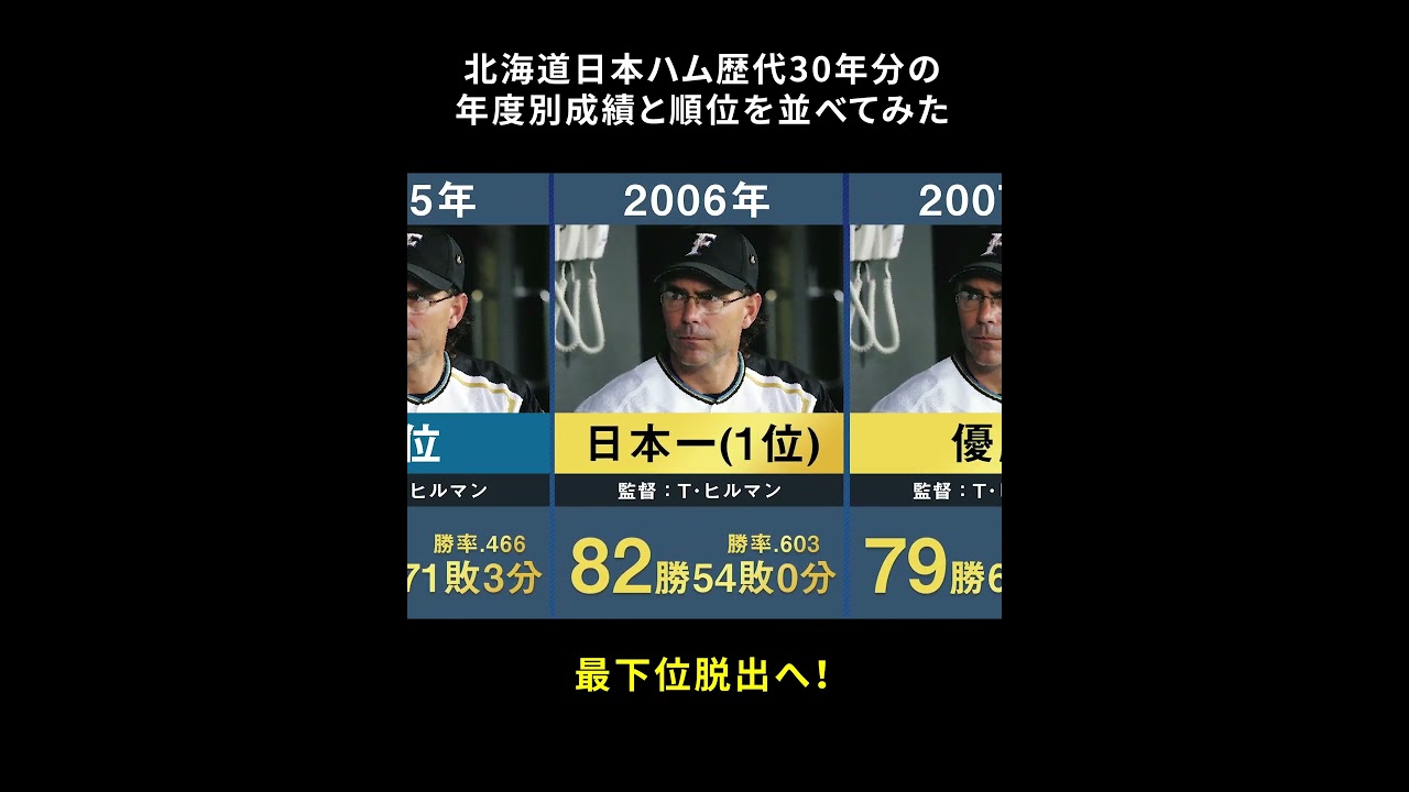 【最下位脱出へ】北海道日本ハム歴代30年分の年度別成績と順位を並べてみた【プロ野球 BIGBOSS 新庄剛志 栗山英樹 ヒルマン 大沢啓二 梨田昌孝 大島康徳 上田利治】