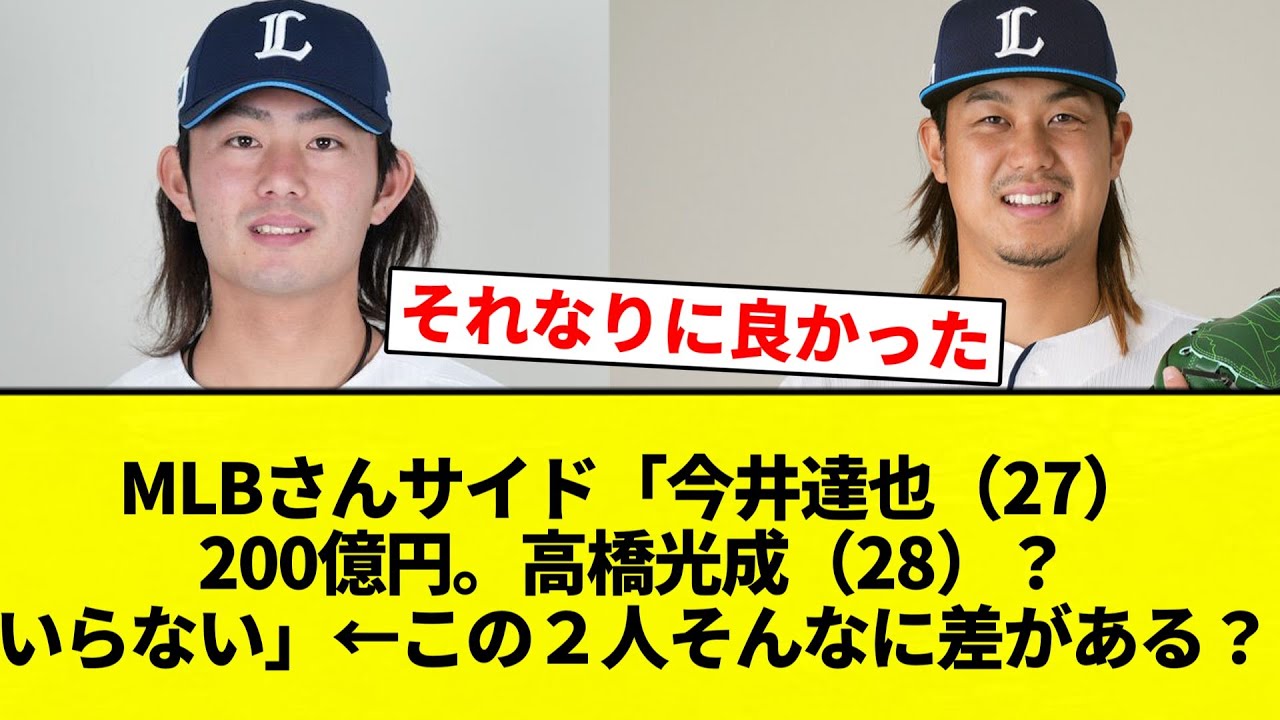 【疑問】MLBさんサイド「今井達也(27)200億円。高橋光成(28)?いらない」←この2人そんなに差がある?【プロ野球反応集】【2chスレ】【なんG】