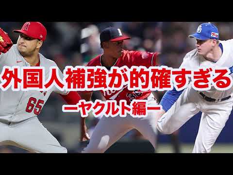 皆さんこんばんは。NPP選手です。今回 はですね、FA宣言をしてた選手がね、 続々と球団の遺跡叫、小原選手は西武 ライオンズ、そして松本号選手は日山から 巨チへといったところで、ま、辰選手は どうなのかってところなんですが、今回は ヤクルトスタのコフの補強の動きについて 一体どう思ってるのかっていうところ、 順位が順位に影響するのかっていうところ ヤクルトの順位僕は再開予想してるんです けど、今奥のヤクルトの補強の動きによっ て果たして順位はどのぐらい買うのかって ところにも少し売れていきたいと思います 。ま、外国人ピッチャーをね、3人獲得し たりとか大選手を原トで獲得した りっていうところ、あとヤクルトの外国人 ピッチャーを獲得した意っていうところに も僕は少しこの動画で触れていきたいと 思いますので、是非高評価、チャンネル 登録の方、そしてコメントの方もですね、 是非よろしくお願いいたします。という ことで早速動画に入っていきたいと思い ます。こちらをご覧ください。 まずは現視点でヤクドサウロズが行った 補強。今獲得調査中の外国人ピッチャーも いるということで一応ね、まとめてみたん ですけどまず1番上ですねランソ選手は 抑えというところでヤクルトが獲得と そしてボルターズ選手も元中日のスケット 外復というところで右ピッチャー最速 160km投げるというところで、ま、 中一時代はね、そこまで実績もなく登板数 もね、そこまで積んではないんですけど、 ヤクルトの中津人後ろの方を救ってくれる かどうかっていうところに非常に行きた いっていうところですね。あとヤクルトが 獲得調査を行ってるこの補正渡田選手に 関しては通算142試合登板をねアメリカ でしててすごくね注目というか非常にね ヤクルトでも大きな勢力になるんじゃない かなっていうところでこの3人の外国人 ピッチャーは共通点で言うと3人とも パワーピッチャーなんですよ。ま、 ヤグルトは結構パワーピッチャー系が好き というか、そういった種パワーピッチャー の外国人系ピッチャーもね、活躍した系が 実際にあるので、ま、実際このヤクルトの スケット外国人ピッチャー穂雪関田選手も ヤクルトにね、もし加入するっていうこと になったら、ま、大きな戦力になるのは 間違いないんじゃないかなと思ってます。 そして現気ドラフトで加入したね、大選手 もね、一応コンフのね、補強としてね、 一応加えてみたんですけど、ま、大選手も 、ま、実際選抜タイプというよりかは どちらかというと中月とか後ろの方の 抑え向きのタイプと言いますか、ま、 ヤクルトに来たからにはね、やっぱり広島 よりもね、絶対にチャンスはあると思い ます。やっぱりカープの投手よりも ヤクルトのピッチャーの方がやっぱりそう が薄いというか、やっぱりね、大変な投手 だったので大選手がヤクルートに来たのは 、ま、大選手自身もチャンスですし、ま、 ヤクルトの球団側からしてもね、大きな 戦力としてこの大選手、主にね、中継器用 とか勝ちパターンの気用とかもできればね 、いいと思ってて、矢也ヤ選手もね、 ヤクルト復活したので、大選手もそれこそ ね、同じカープから来た矢崎選手みたいに 復活を果たしてくれることを僕はすごく 期待しています。ヤクルトの方ポイントし て結構ヤクルトファンの方から選抜 ピッチャー外国人で取らないのかっていう 意見。なんで抑え候補3枚も獲得したの かっていうね、ヤクルトファンの方とか、 ま、プレ野球の多団ファンの方のね、意見 であったんですけど、僕は結構この リリーフ候補の外国人ピッチャー3枚獲得 の糸っていうのは結構僕は納得というか 理解してて、ま、実際ですね、大西選手が 4年連続40試合登板で来シーズン金属 疲労がかなり懸念されるっていうところと ですね、あと星選手も疲労面で結構連投が 効かないピッチャーで結構中継が苦しかっ たところってことを考えと結構こういった ね、リリーフ候補になる、中継候補となる 外部人ピッチャー3枚を獲得したヤクルト の糸ってのは僕は理解はできますね。なの で来シーズンの戦い方で言うと、ま、この ままの夫人で行くんだったら、ま、選抜 ピッチャーは56回まで試合をね、作って 、あとはこのリリー夫人、1回夫人 ピッチャーなのか、大ミ選手なのか、他の ピッチャーになるのかわかんないんです けど、リリー夫人に試合を託運びっていう ことに現状はね、試合運びの方程式として なるんじゃないかなと思ってますね。ま、 ヤクルトがですね、結構9回とか終盤まで 投げれそうなピッチャーが少ないんですよ 。ま、吉村選手とか、ま、高橋慶二選手も 覚醒すればそのぐらいまで行けそうな気は するんですけど、ま、奥川選手もワン チャンね、その8回とか9回とかね、最後 の本場まで投げてくれる期待感はあるん ですけど、結構ヤクルトは1年間ね、 ローテを守れる選手がいないのではい。な のでまず選抜ピッチャーは56回まで試合 を作