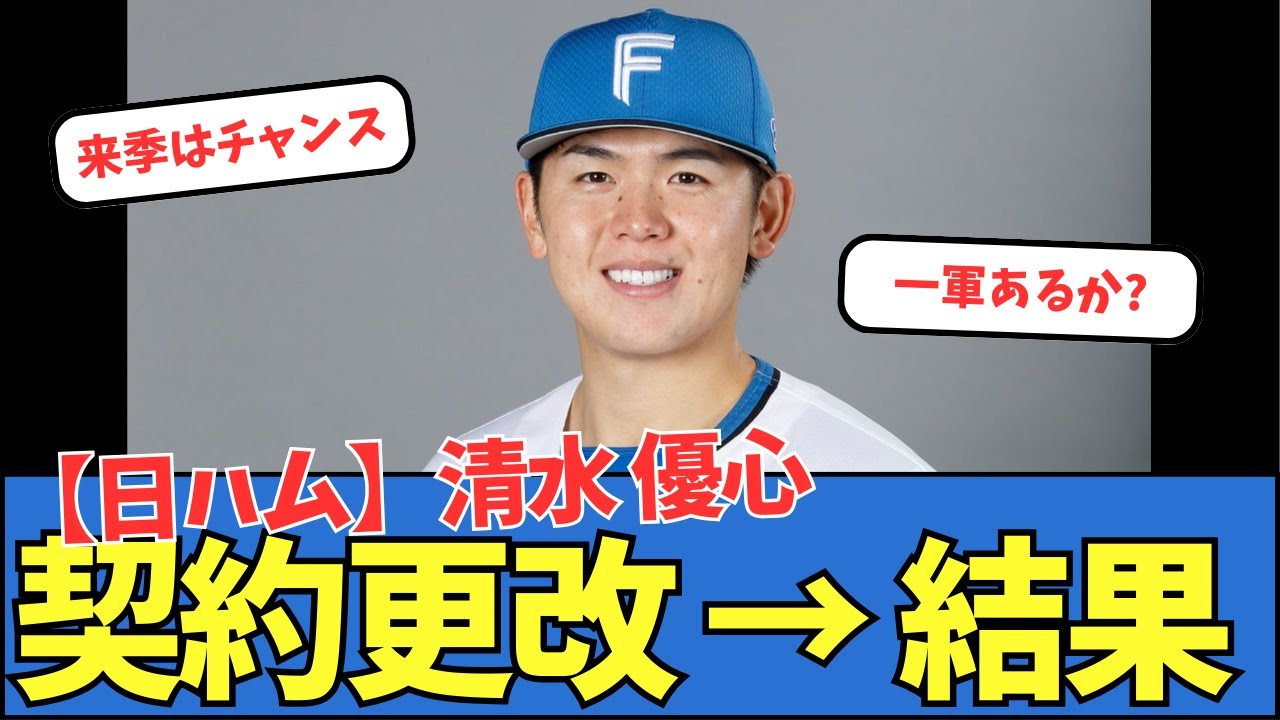 【日ハム】清水優心、契約更改 → 結果