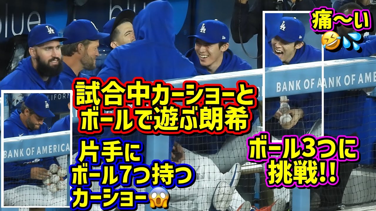 驚愕‼️カーショーが7個のボールを😱朗希もパヘスもテオも挑戦するも…🤣【現地映像】ドジャースダグアウト