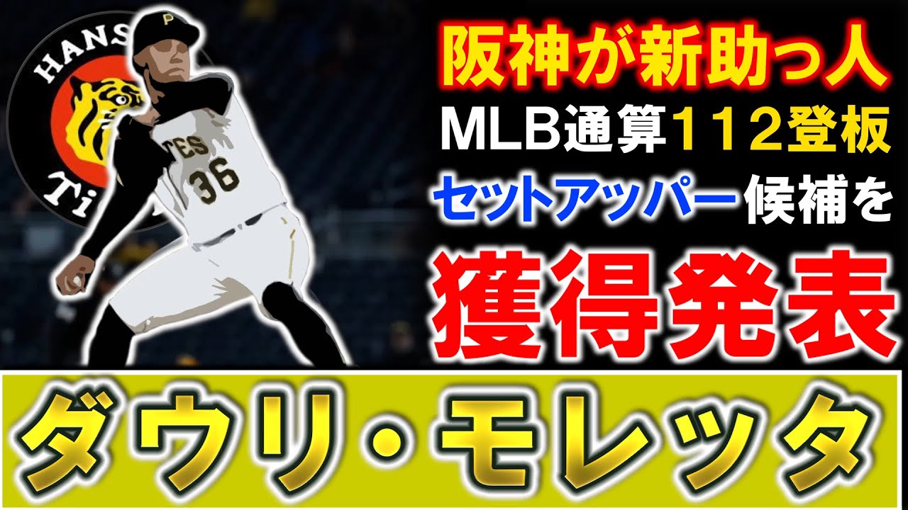 はい、プレボルどうも野球人です。阪神 シスケットMLさん112登板 セットアッパ候補を獲得発表ダウリン漏れ たということでございましてはい、ま、 今回も新スケットの話でございまして、ま 、阪神がね、今日獲得発表がありました。 それがまあダウリンモレッタ。ま、今まで 割とこう名前が上がっていた選手はいたん ですけど、ま、このモレッタに関しては 事前情報なくね、こうパッと発表され たっていうところもありまして、ま、割と 驚きではありましたし、ま、しかもね、 それなりにメジャーで実績あって、で、 今年もね、トリプレA含めばっちりこう 活躍していたというところもあるんで、ま 、よく引っ張ってきたなというとこでは あるんですけど、ま、その辺りも含めね、 色々見ていきたいと思います。では、まず 記事からチェックしていきましょう。 はい、阪神がダウリモレッタを獲得発表。 阪神は19日ダウリモレッタ投手と契約を 結んだことを発表した。単年契約で年法は 100万ドレ。背番号は99に決まった。 モレッタは球団を通じ、私に日本でプレイ する機会を与えてくれたタイガースに感謝 します。日本でプレイすることは私の長年 の夢であったので今回実現できたことを 大変興奮しています。熱狂的なタイガース ファンの前でプレイするのを楽しみにして います。チームの連覇に少しでも貢献 できるように精杯頑張ります。ありがとう とコメントした武内球団フグ本部長は メジャーでの経験もあり、中崎投手として の経験は豊富です。大キアチームでも主に 長として大ジャマーメンで登板しチームの 勝利に貢献してくれると期待していますと 説明した。モレッター今期パイレツに所属 した118社員討伐し一緒1杯防御率 3.2をマークしたメジャー2では112 社員討伐し116回で138をマークして いる。独特の起動描くスライダーが武器で 100マイルに迫る直球も魅力だ。 2024年シーズンに右のトミージョン 手術を受けて前球。レッツはベースボール アメリカのプロスペクトにランクされる などの有防株だったということになって おります。はい。というわけで、ま、阪神 がね、ダウリモレッタ獲得発表。ま、背 番号もね、99番に決まって年方も 100万ドレ、ま、細かいところまでも 発表されておりますので、古打1ではあり ましたが、しっかりとリリーバーをね、 確保してきたというところでございます。 では、そんなね、ダウリンモレッターどう いう選手なのかもうちょっとこう詳しくね 、見ていきましょう。 はい。ダウリモレッター2015年 アマチャFメルビー入り出身中はドミニカ 1996年1月15日まで29歳 188cm102kmポジション ピッチャーで右投げ右打ち平均休速が約 152kmほど九州がスライダーチェンジ アップレッズのマイナーでキャリアを スタートさせると2021年にMLBデビ しリリーフとして4試に飛ばさらに横とし て22年には35社に登板しオフに パイレーツでトレードとなるも23年には 55登板と着実に登板被害を増やしており ました。しかし昨年はトミージョン手術を 受けたこともありシーズン前球となると それでも今シーズンに引き渡して トリプレイで高成績を残しMLBでも18 点登率3点台とまず活躍を見していたと いうことになっております。はい。ま、 このダウリ漏れたまでねされていた選手は ありまして、ま、パイレツにトレード後 法学的にメジャーの登板がね増えてきてい たというとこでございます。こ23年には 55登板。こうバリバリね投げれていたん ですけど、ま、ただ去年トミージョン手術 を受けて前球。で、今年はそっから復帰し てメジャーでもこう投げ出していたという ところではあったんですよね。ま、ただ そんなもった11月21日ここで自由契約 ま、ノンテンダーという形で市場に出てい たというとこではあるんですけど、ま、 今回阪神が獲得を発表というとこでござい ました。ま、こうメジャーでもね、全然 契約あったんじゃないかなというとこでも あるんですけど、ま、しっかりと阪神が目 をつけて狙っていたというとこでござい ます。では、そんなね、モレッターどう いう成績を残しているかっていうのも見て いきましょう。 はい。では成績見ていきましょう。MLB の通算は112で6勝5敗8ホールドを2 セーブ116.2で防御率4.17打差し 率10.65よ式率3.47とま、 メジャー通算ね100試合以上投げており ましてま、防御率は4点台の前半で特殊す べきはやはり脱三率ですよね。ま、これが 10.65と、ま、かなりね、三振が取れ ていたピッチャーというところでござい ます。ま、ただ去年はトビージョン手術で 今シーズンは復帰っていうところであり まして18等番で一勝1杯2ホールド 16.2で防御率3.24打サ率 10.26よ式率3.78とま、今はこう 18等ながら防御率は3点ではありますし 、ま、三振もしっかり取れていたという ところが分かります。で、さらにトリプA では35等で4勝礼拝8ホールド、37点 レイニングで防御率2.43、打算率 13.86、よし率5.11と、ま、 トリプAでもね、リリーバーとして高成績 を