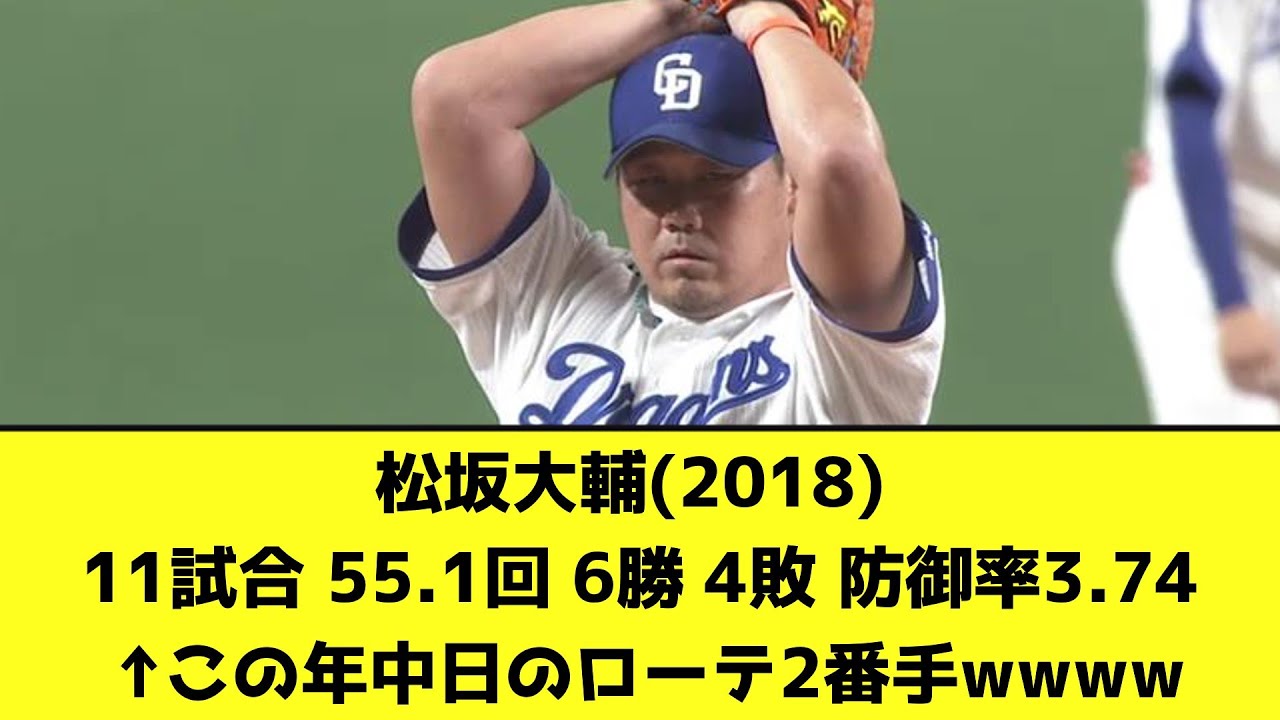 松坂大輔(2018) 11試合 55.1回 6勝 4敗 防御率3.74 ←この年中日のローテ2番手wwww【なんJ反応】