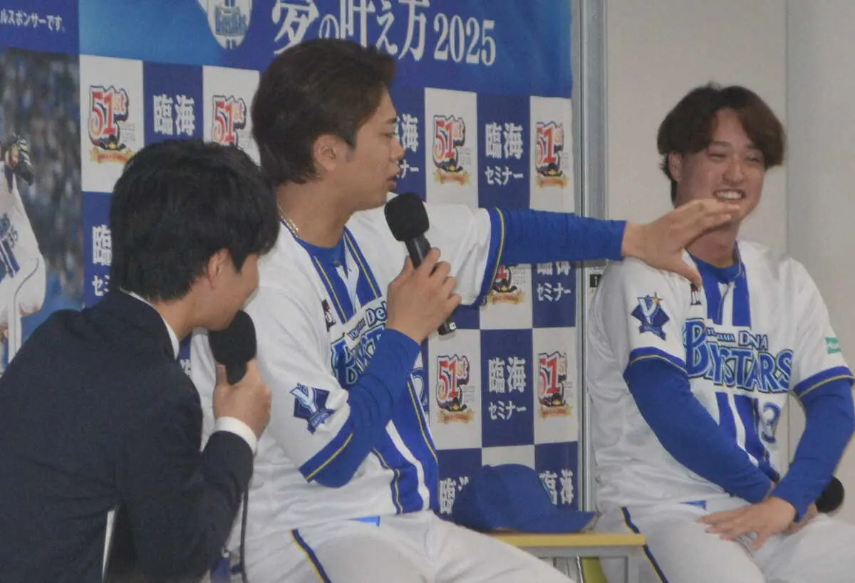 DeNAの入江大生投手と橋本達弥投手が21日、横浜市内の「臨海セミナー」で「横浜DeNAベイスターズの選手による特別授業“夢の叶え方2025”」に講師役で参加。受験生を前に「熱弁」した。